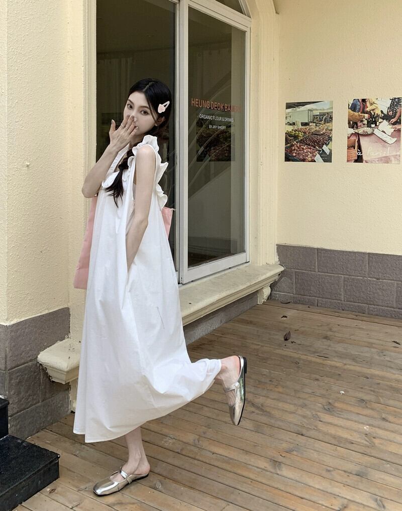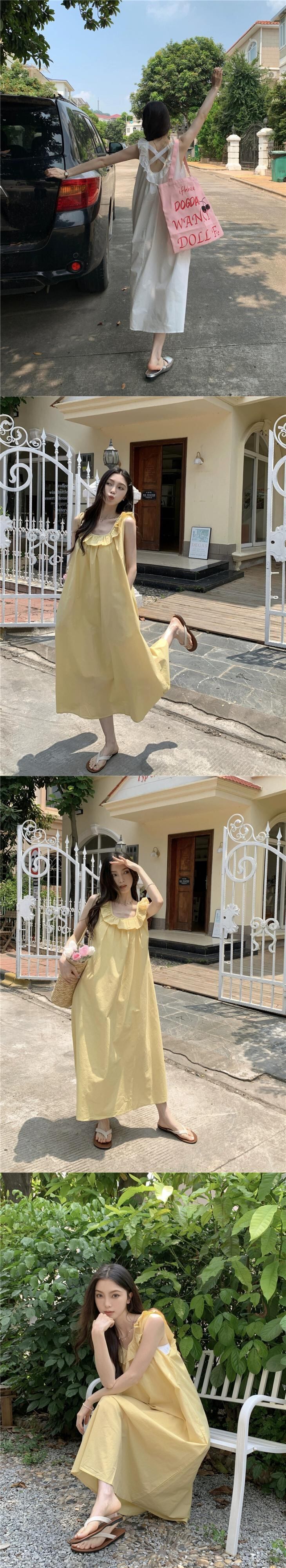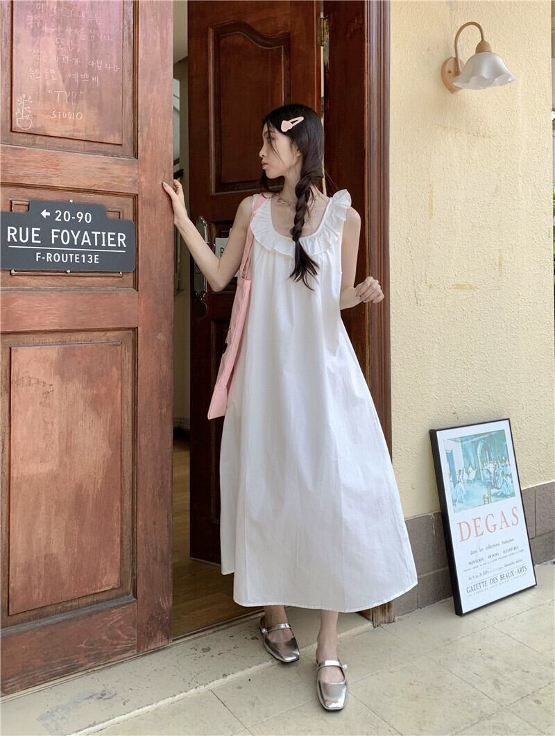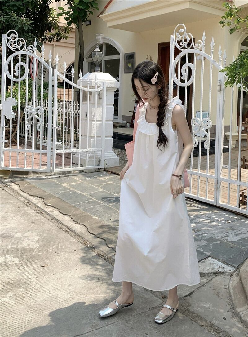 ノースリーブベストドレス女性夏バージョン 2023 新しいスタイル真菌エッジクロスバックレスルーズストレートスカートロングスカート サマー 夏物 missk41921209990