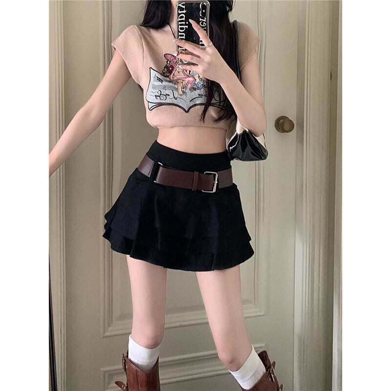 ホットガールスタイルケーキスカートレディースサマースタイルウエストスリムブラック多用途Aラインショートスカート 夏物 missk95417081109