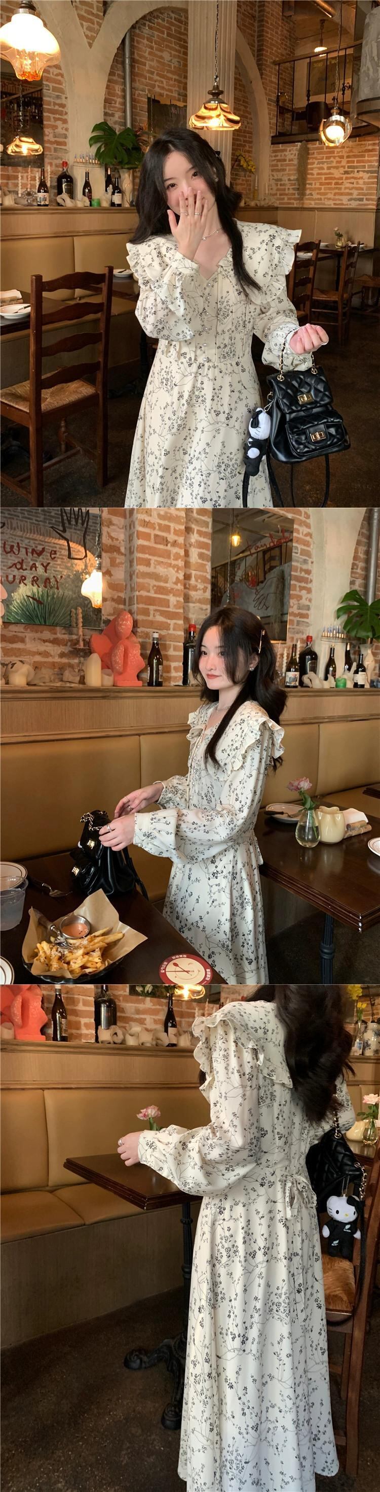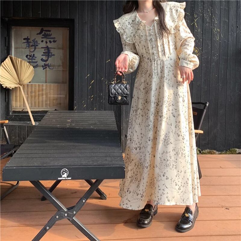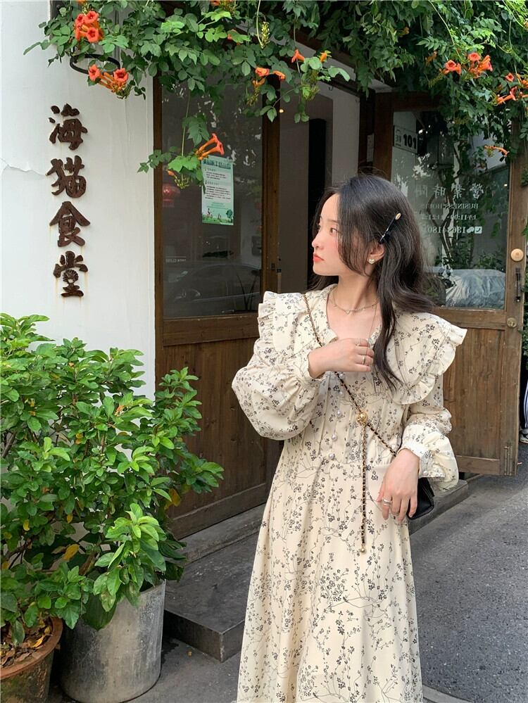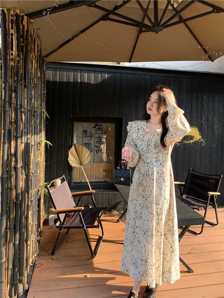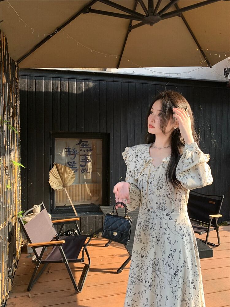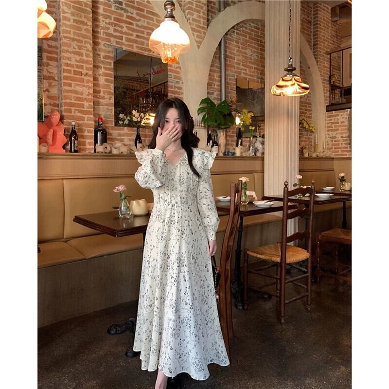 スタイル優しいスタイル長袖花柄ドレス女性初秋 2023 新しいスタイルシックな菌エッジ気質ウエストロングスカート オータム 秋物 missk26207707489