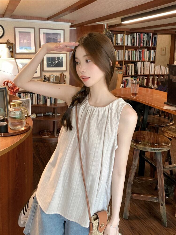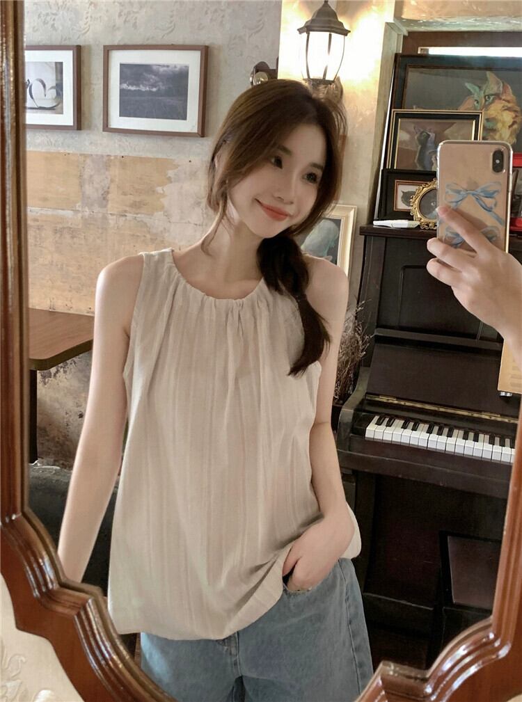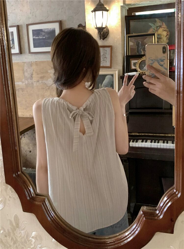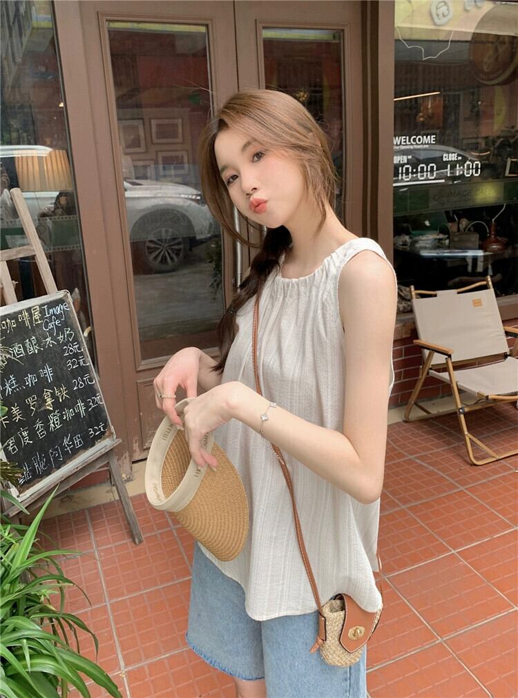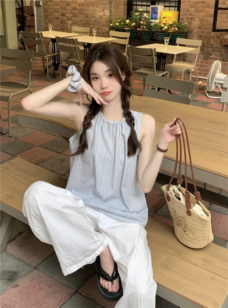 2023 夏の新スタイルの甘いデザインニッチストライプストラップ緩いファッション年齢を減らす多用途ノースリーブシャツ女性 大人ガーリー スウィート キュート カジュアル サマー 夏物 missk32452501322