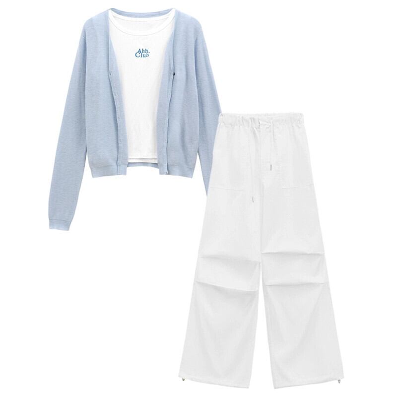 スタイルニットカーディガン刺繍入りレターベストオーバーオールカジュアルパンツ女性秋 2023 新しいファッションスーツ レッド オータム 秋物 missk53588050213