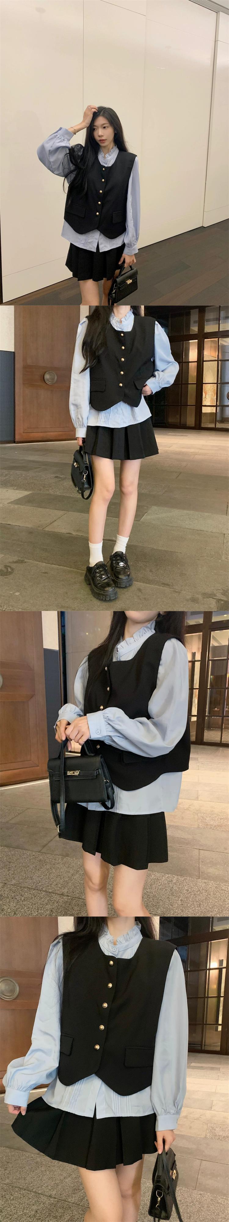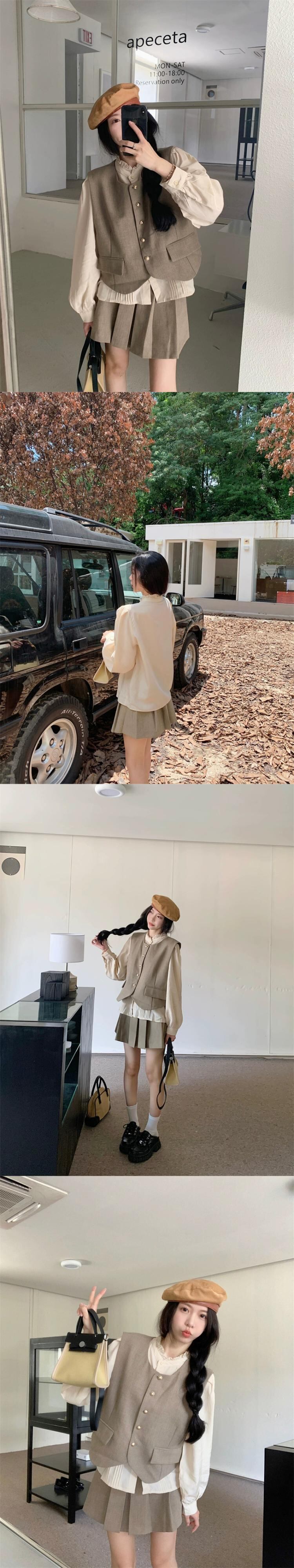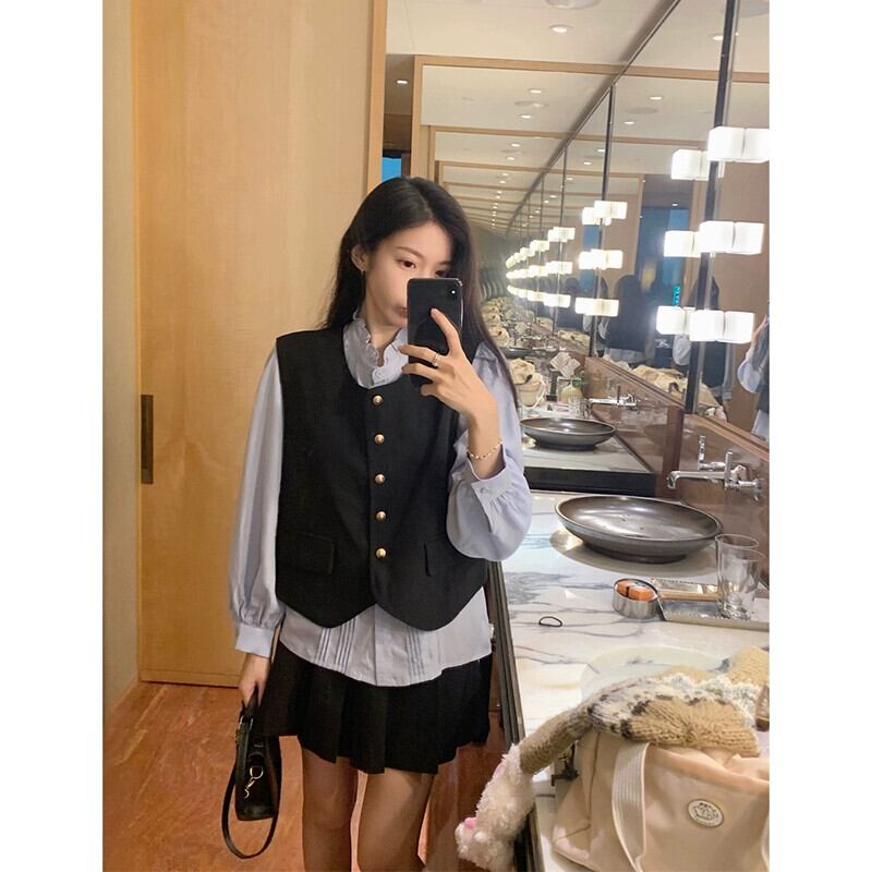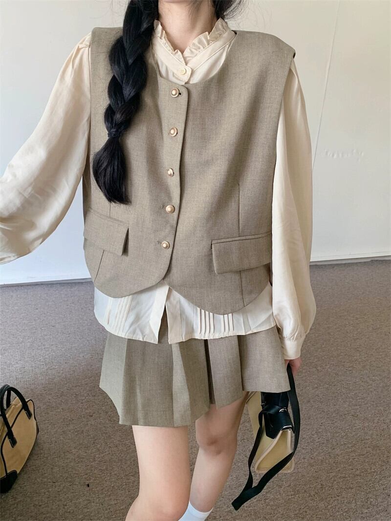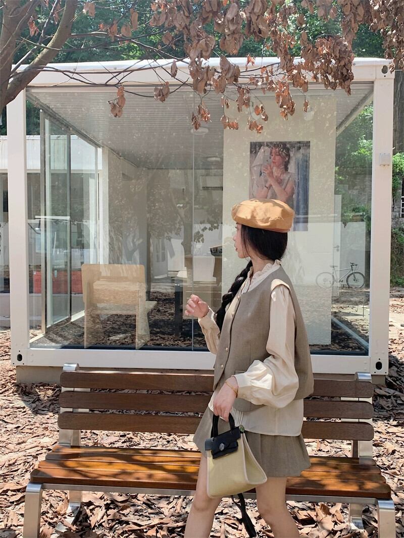 フレンチ風 パフスリーブ シャツ ベスト ベスト プリーツスカート レディース 2023秋 3点セット オータム 秋物 missk89275616518
