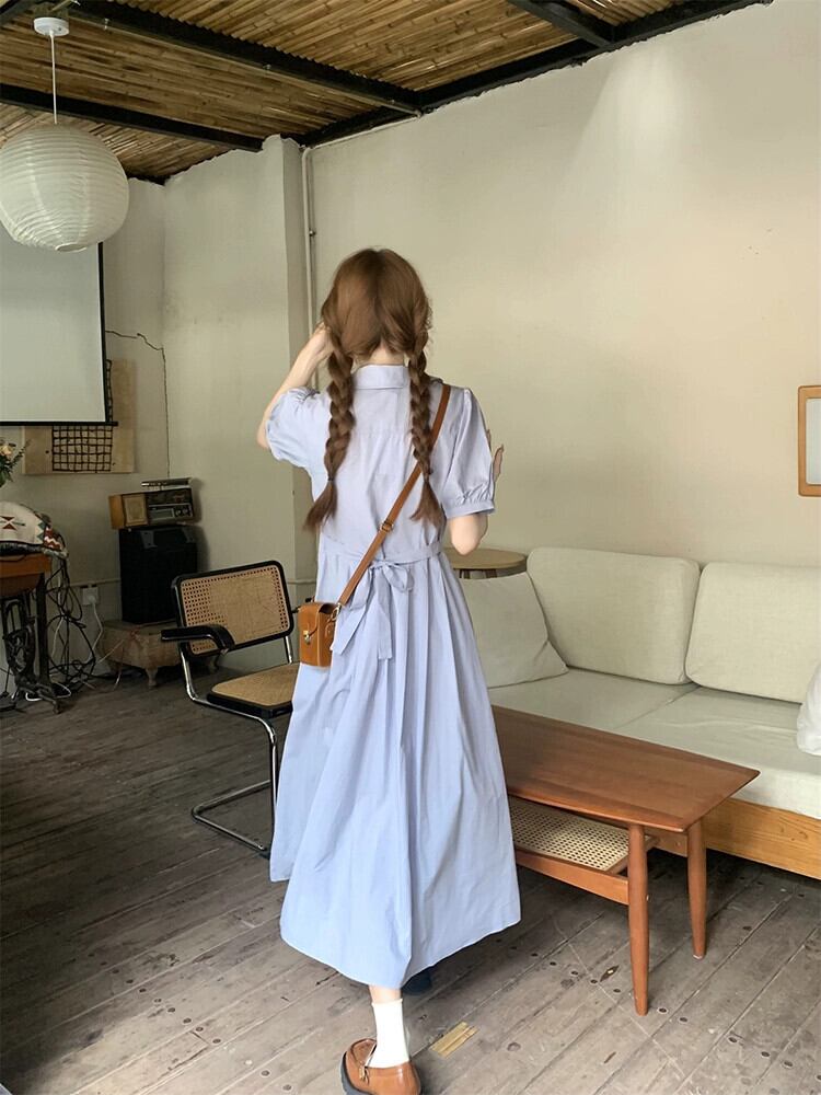 パフスリーブドレスの女性の夏 2023 新スタイルフレンチレトロポロカラーウエスト痩身プリーツロングスカート サマー 夏物 missk85260468862