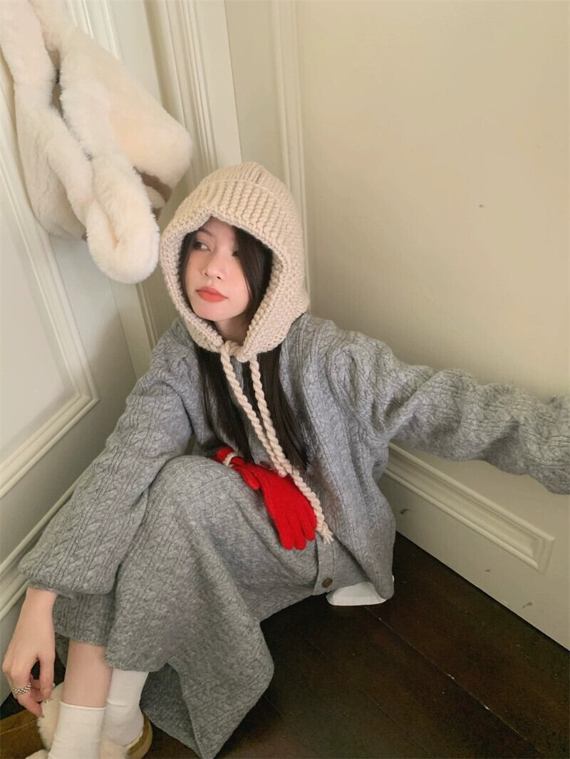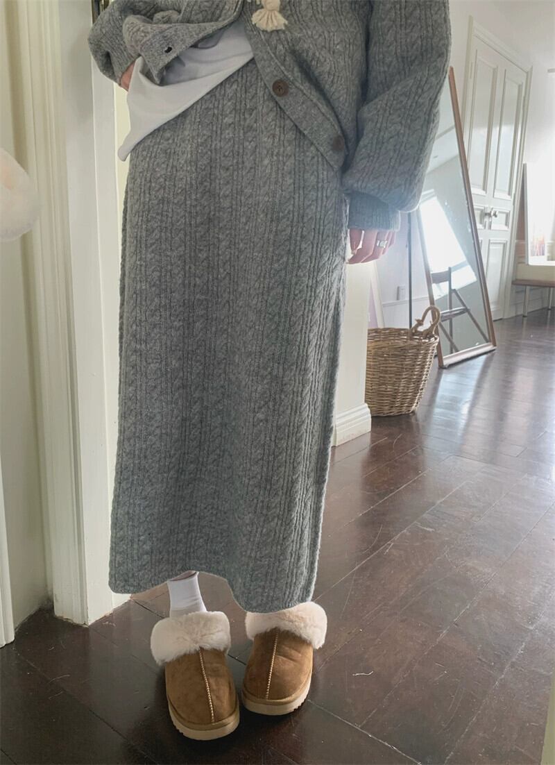 色:グレーのセーター,グレースカート