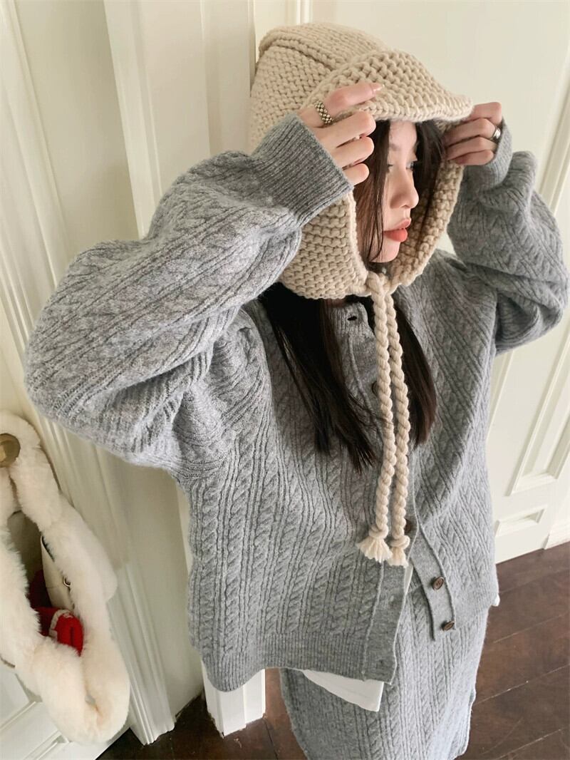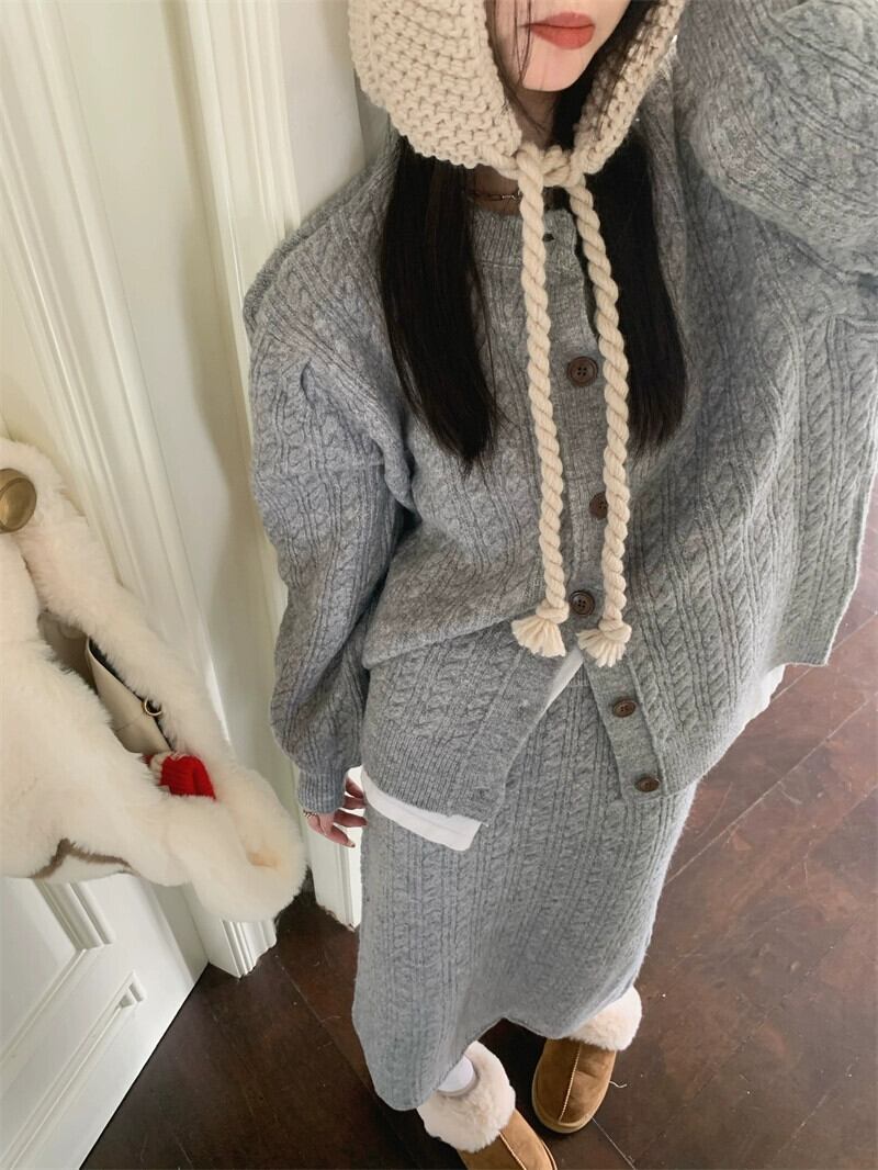 スタイル怠惰なスタイルのセータースーツ秋 2023 新ファッションデザインニットカーディガンハイウエストスカート女性 ハイウェスト オータム 秋物 missk26653745365
