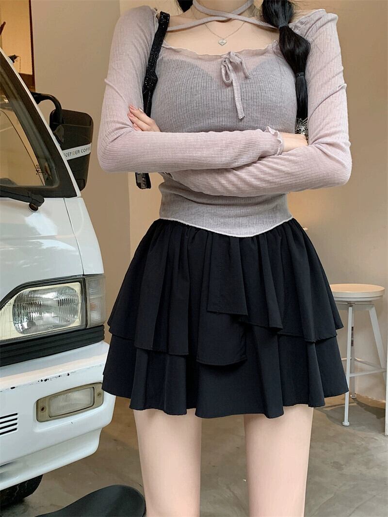 2023 秋の新スタイルの小さな露出防止 A ラインプリーツスカート女性弾性ハイウエストスリムでシックなショートスカート エラスティック 伸縮 オータム 秋物 Aライン missk15243071144