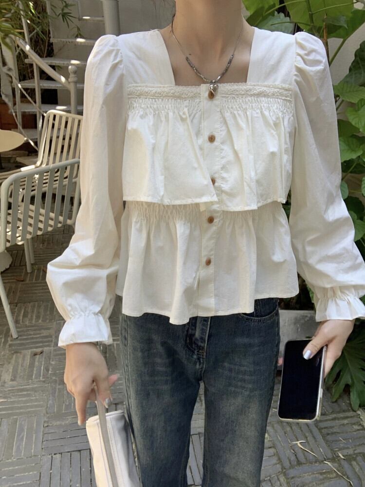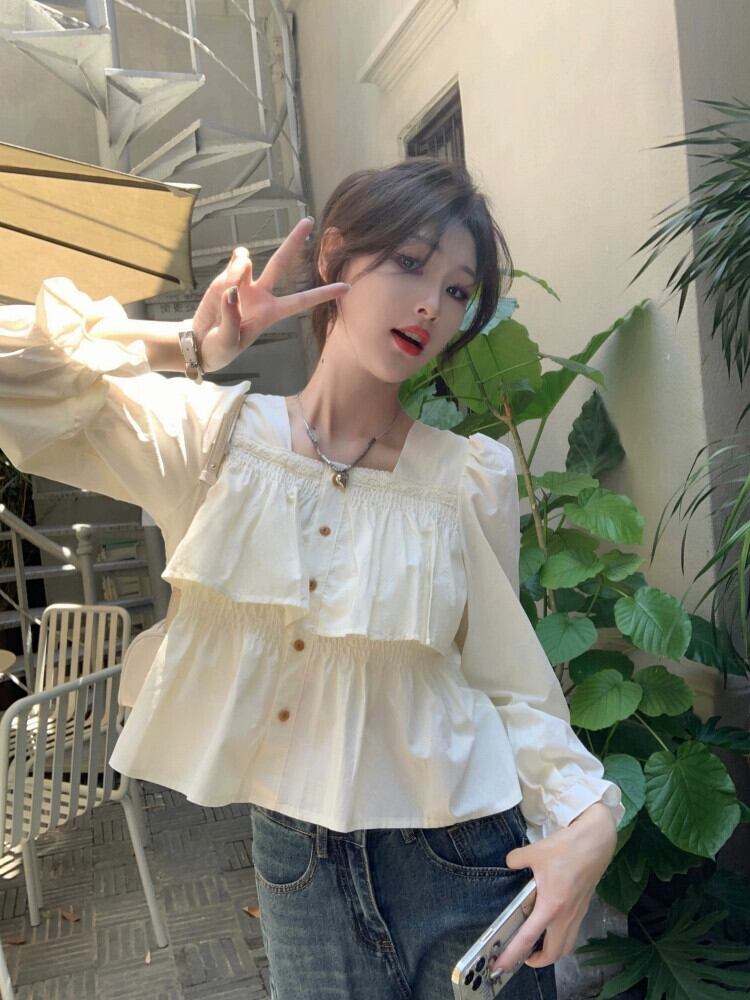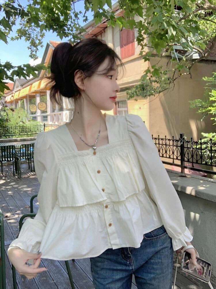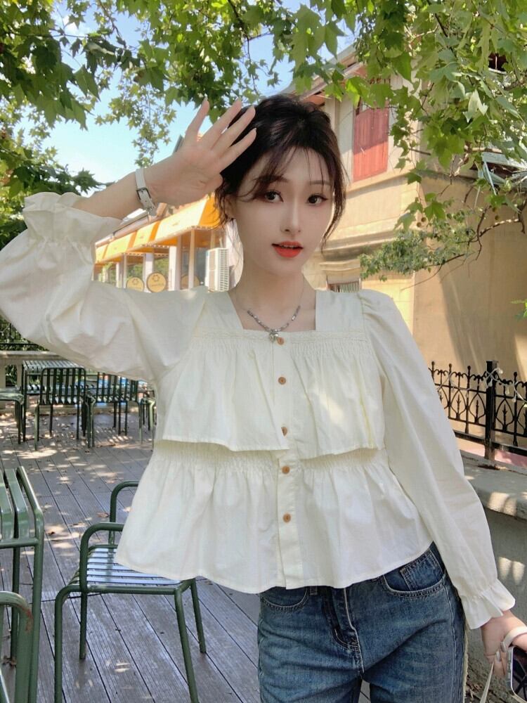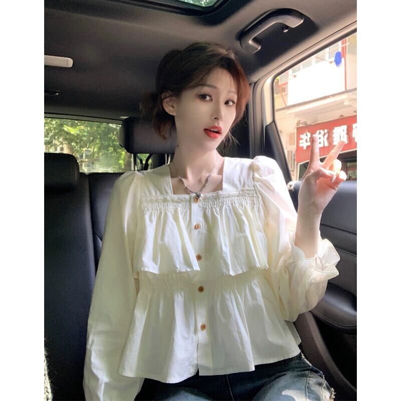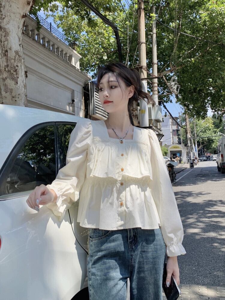 フリルスクエアカラー長袖シャツレディース2023年初秋新スタイル年齢を軽減するルーズで汎用性の高いデザイントップトレンディ ロング オータム 秋物 スクウェア missk15078531268