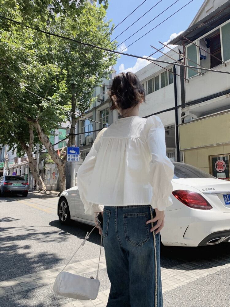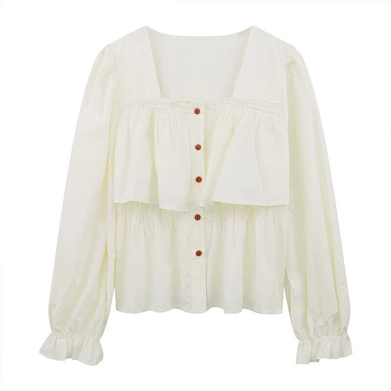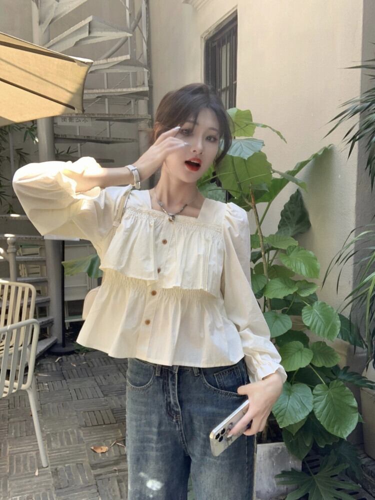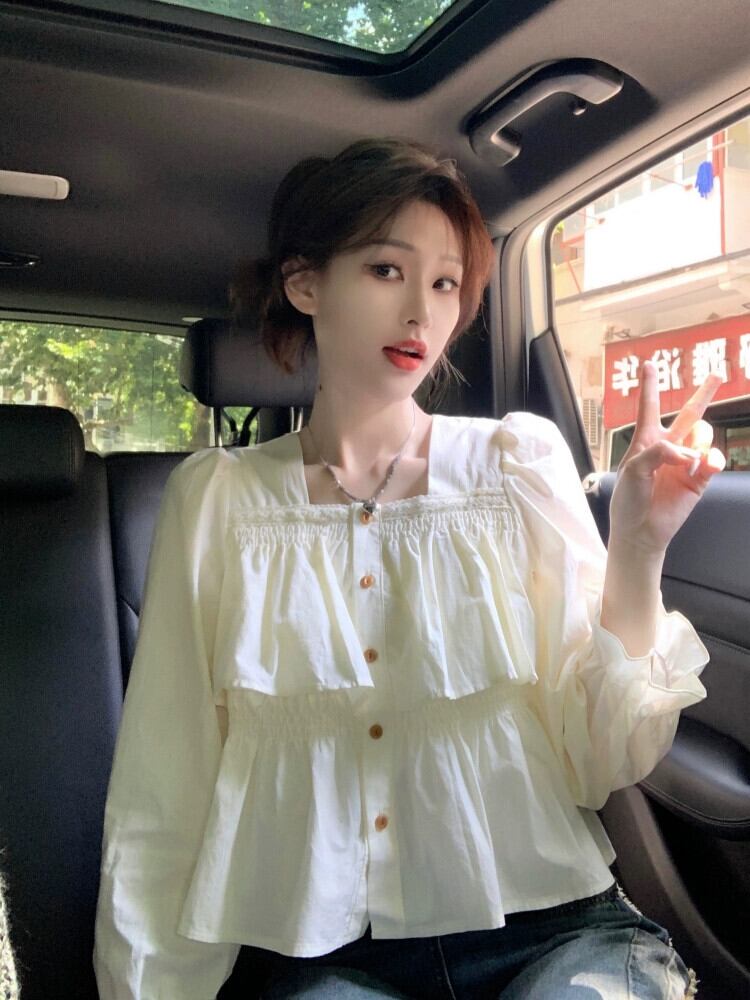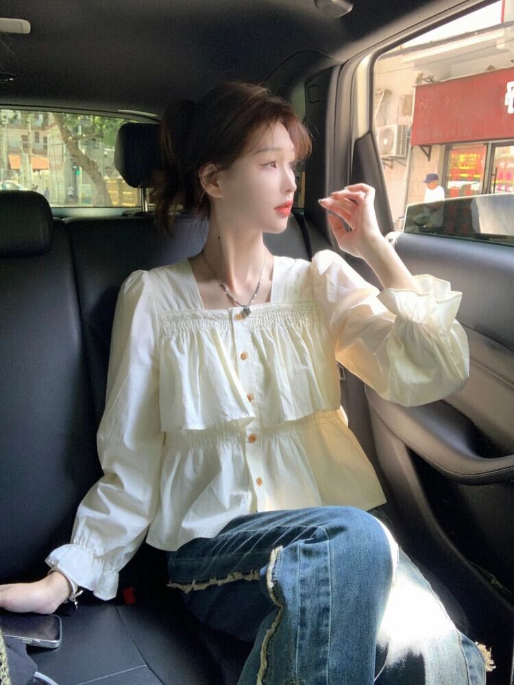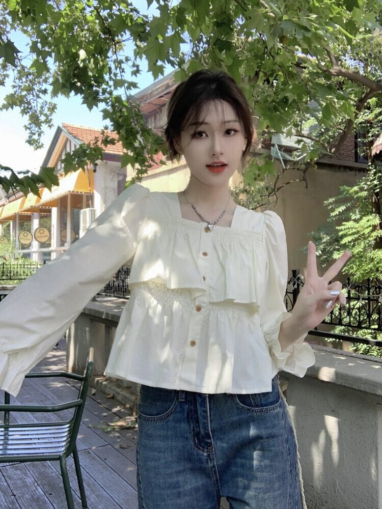 フリルスクエアカラー長袖シャツレディース2023年初秋新スタイル年齢を軽減するルーズで汎用性の高いデザイントップトレンディ ロング オータム 秋物 スクウェア missk15078531268