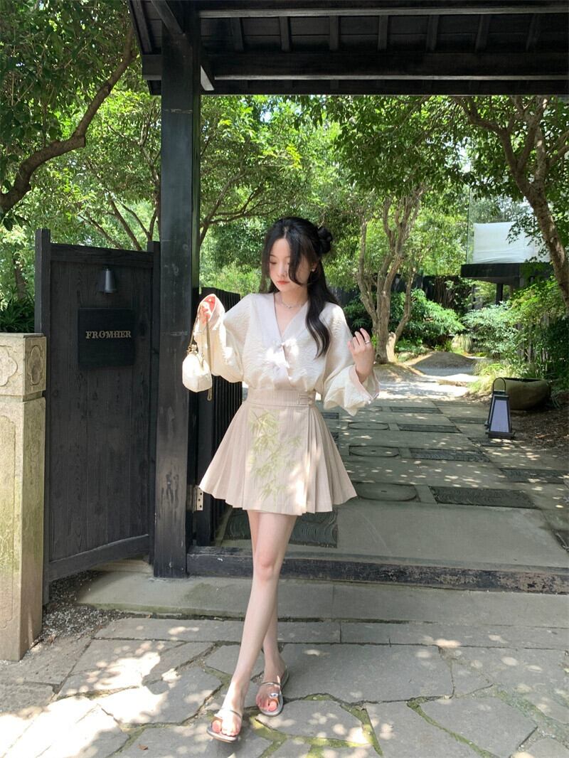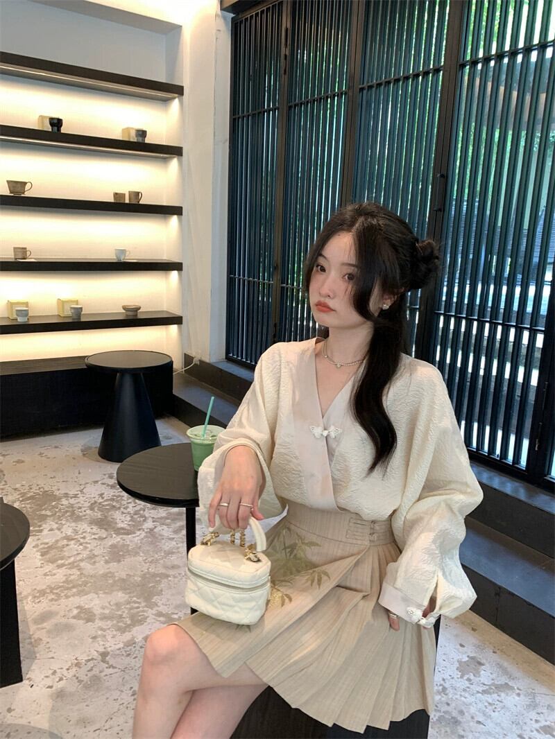 中国風の質感の長袖シャツ刺繍馬の顔プリーツスカートの女性の秋 2023 新しいファッションツーピースセット ロング レッド オータム 秋物 missk46036006947