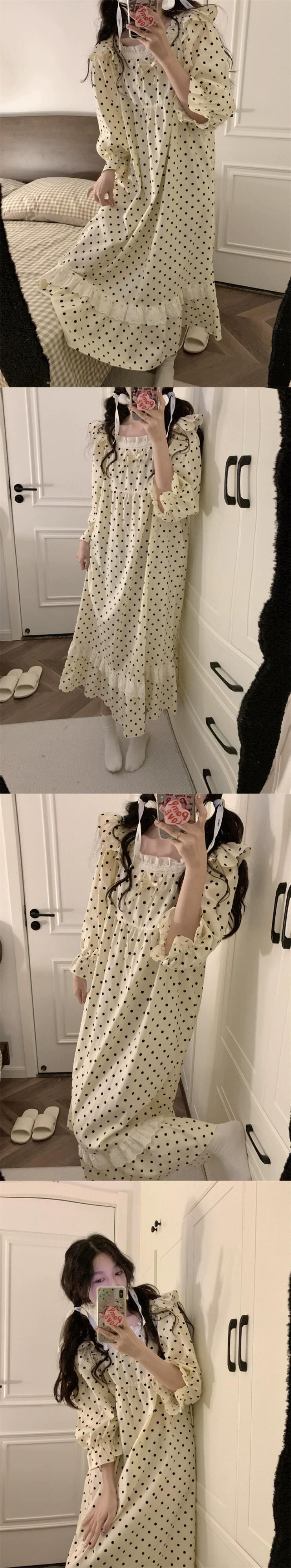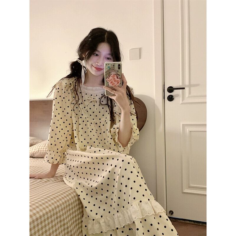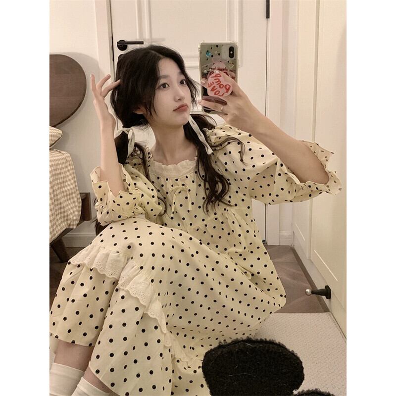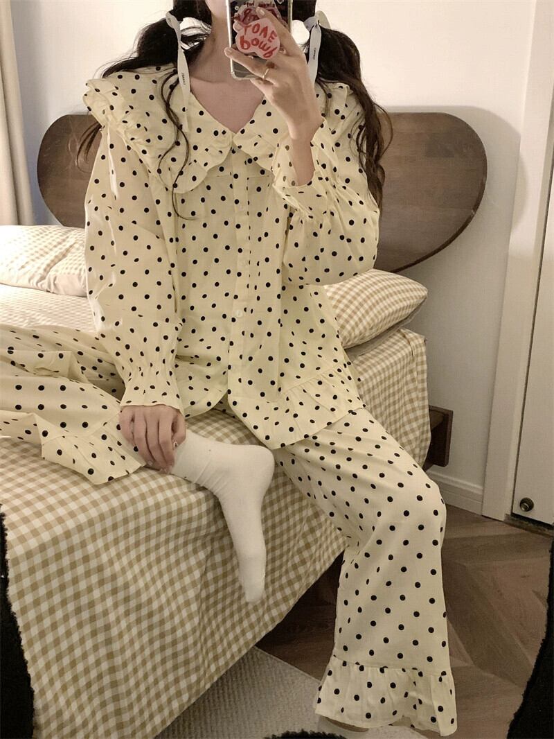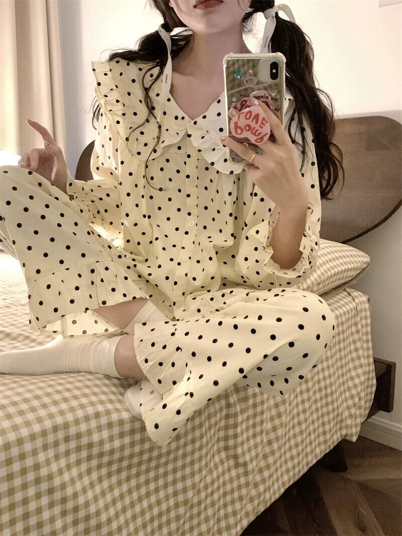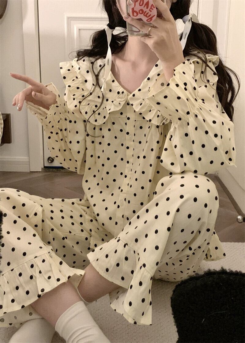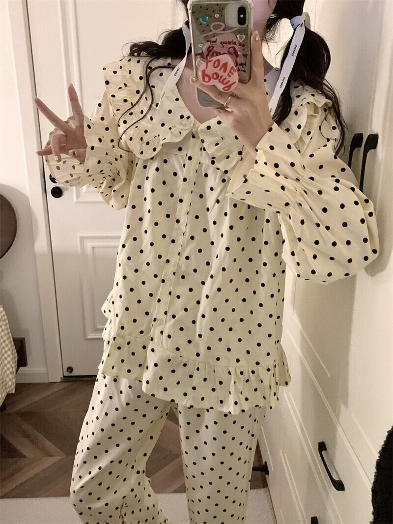 甘くてかわいい人形の襟水玉模様の長袖パジャマとズボンのセット女性 2023 秋の新しいホームウェア 2 点セット ロング 大人ガーリー スウィート キュート カジュアル オータム 秋物 missk13925469369