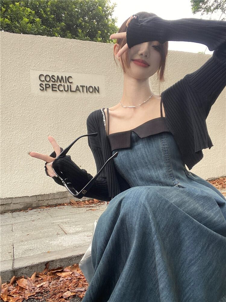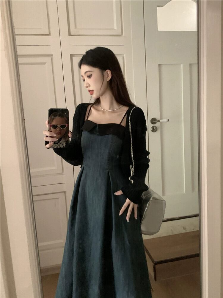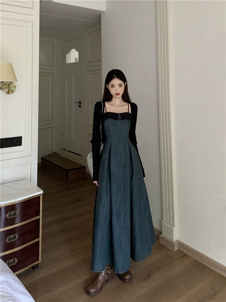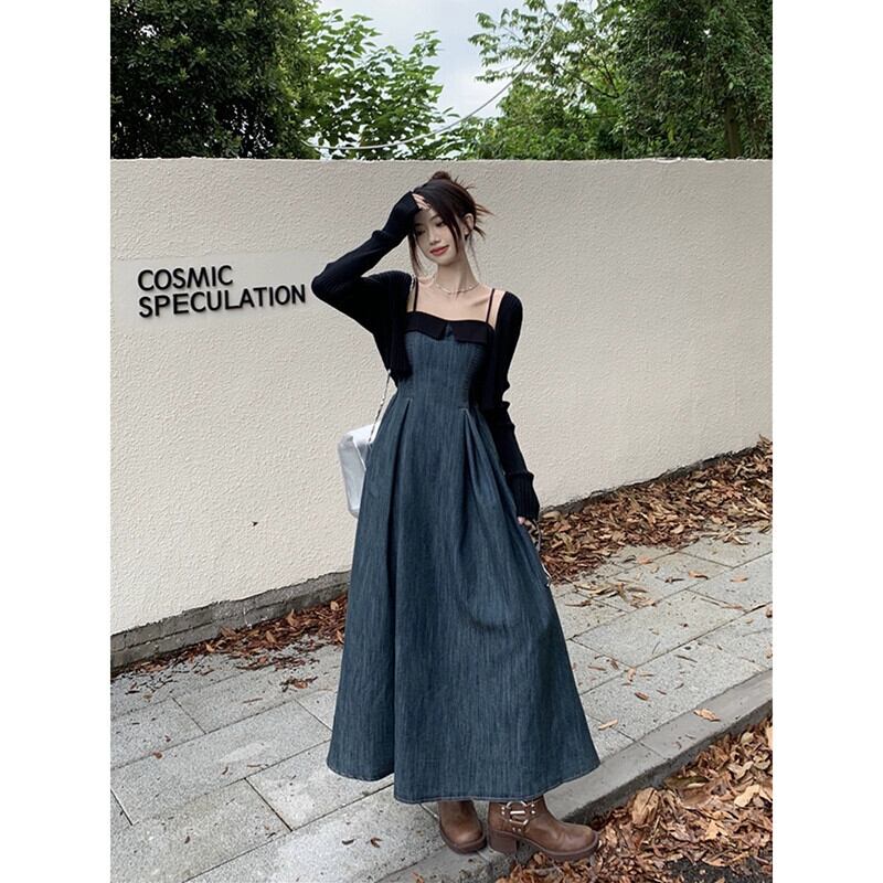 デニムサスペンダードレスの女性秋 2023 新スタイルフレンチニッチウエスト痩身ミッドレングスコントラストカラー A ラインスカート オータム 秋物 Aライン missk61194554845