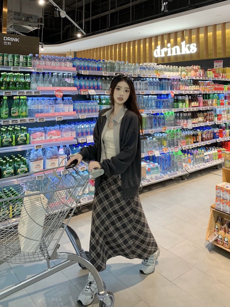 色:ホワイトサスペンダー,チェック柄ロングスカート,チェック柄スカート,ダークグレーのフェイクツーピース