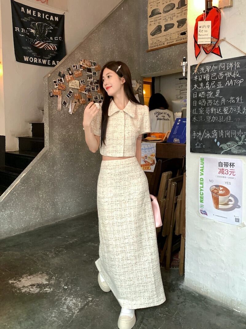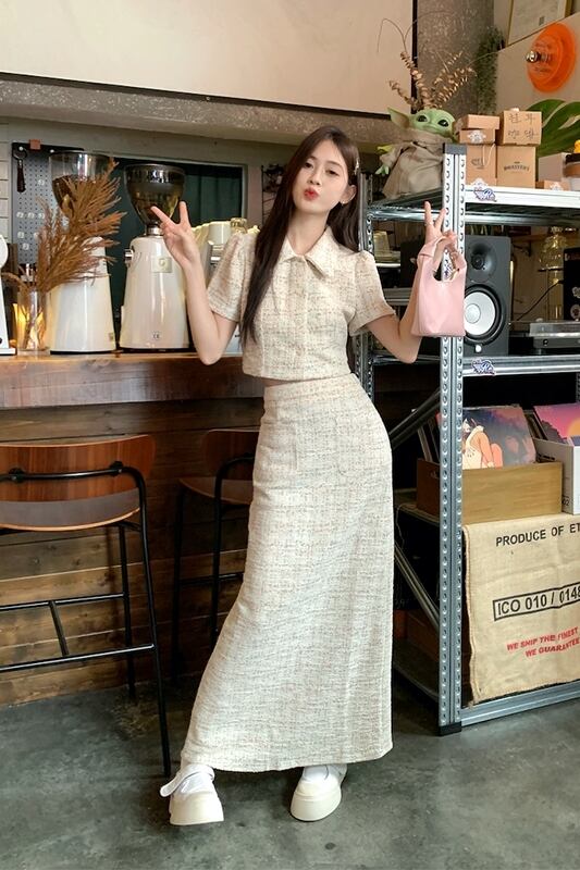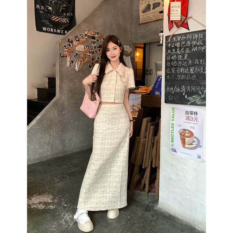 Xiaoxiangfeng ハイエンドポロカラー半袖シャツハイウエストハーフレングススカート女性の夏の 2023 新しいファッションスーツ サマー 夏物 missk34892067367