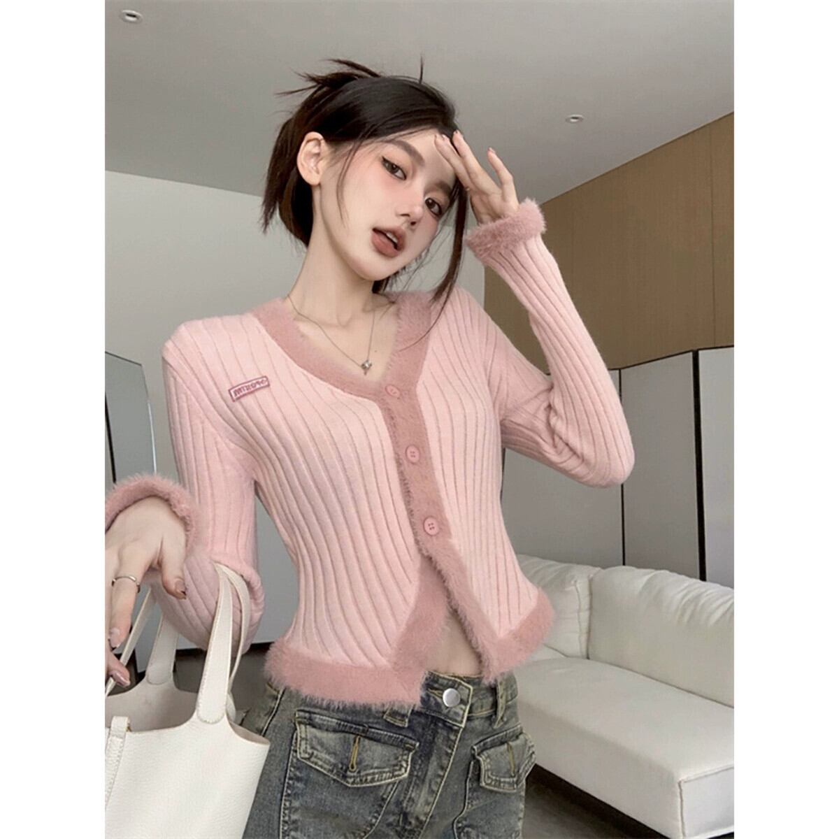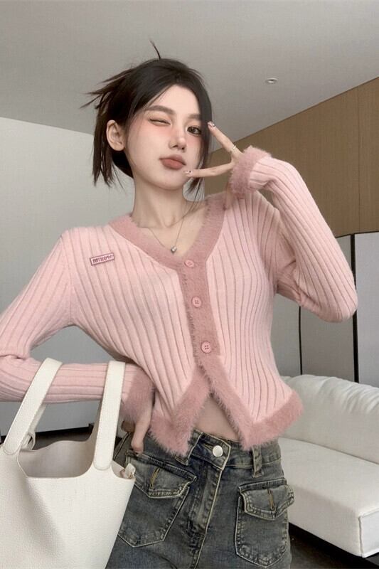 ステッチぬいぐるみソフトワックス状 V ネックセーター秋の新甘くてファッショナブルなデザイン長袖ニットカーディガントップ女性 ロング 大人ガーリー スウィート キュート カジュアル オータム 秋物 Vネック missk13266650718
