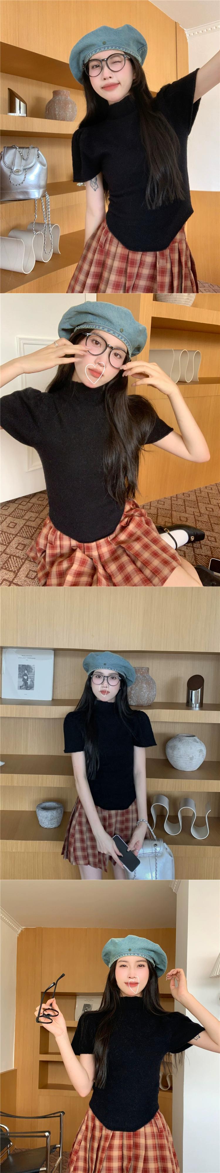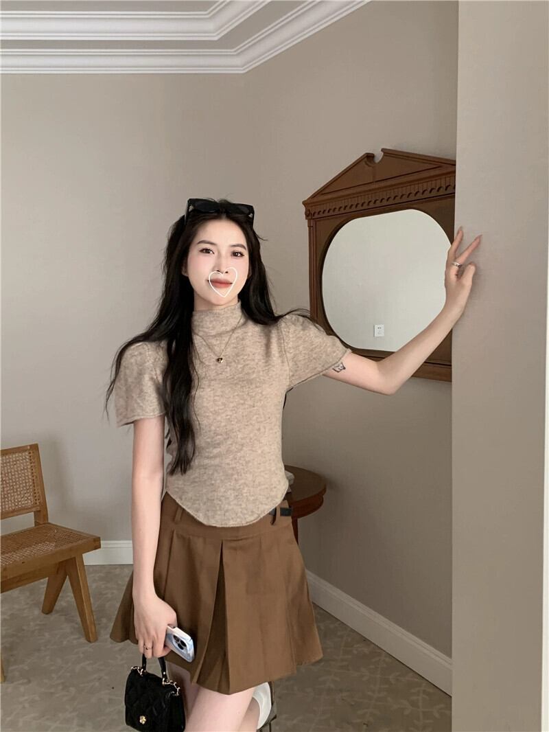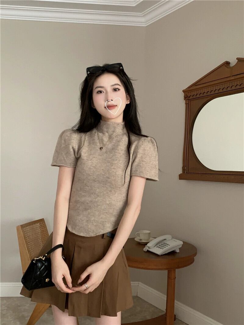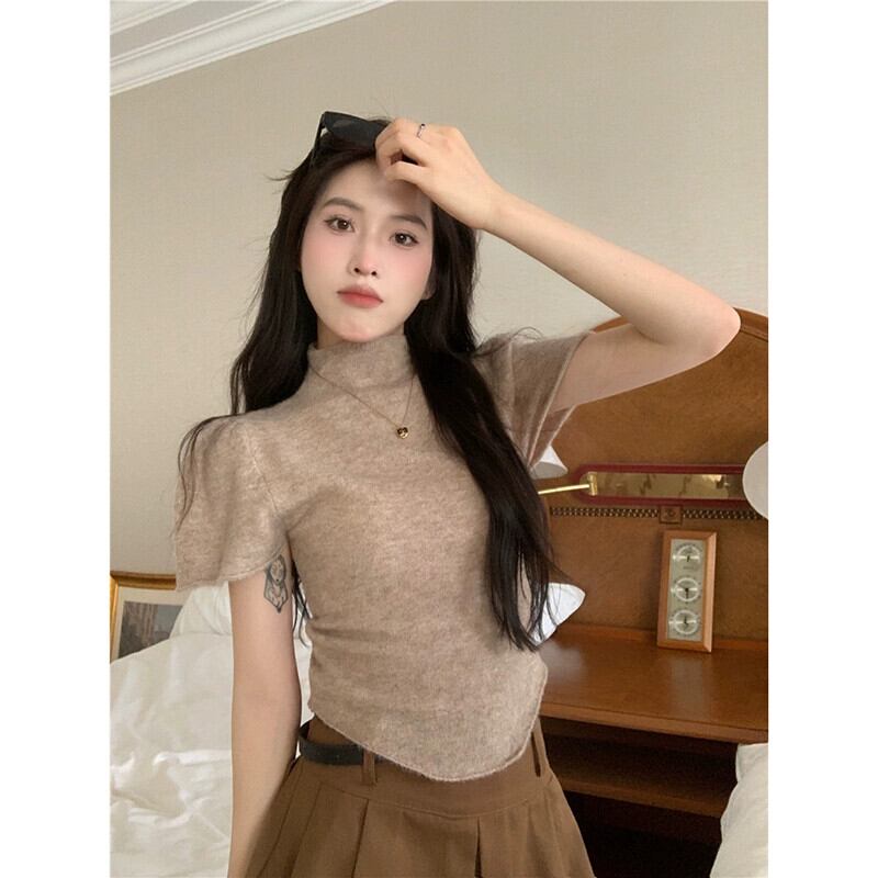 襟半袖セーター女性秋の新しいスタイルファッショナブルなスリムショート多用途無地インナーボトミングトップ オータム 秋物 ソリッドカラー missk91834735281