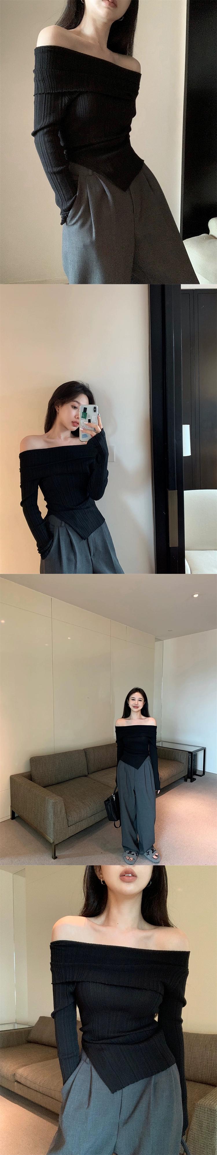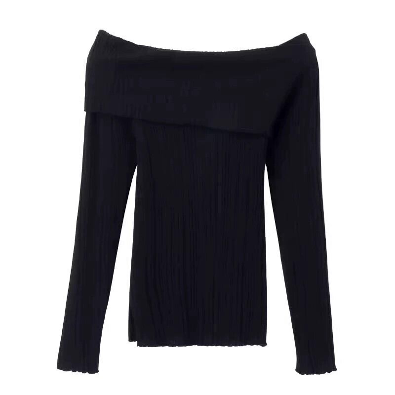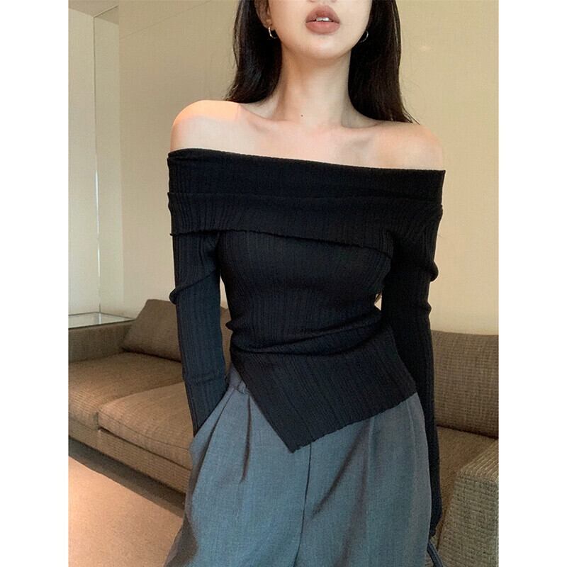 ワンショルダースリット長袖セーター女性秋 2023 新しいレトロ香港スタイルスリムフィットトップ ロング オータム 秋物 missk88464602284