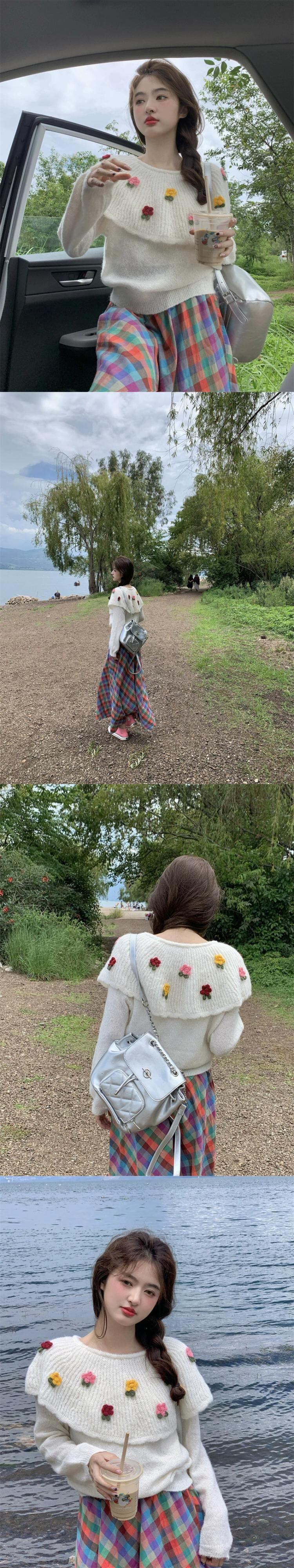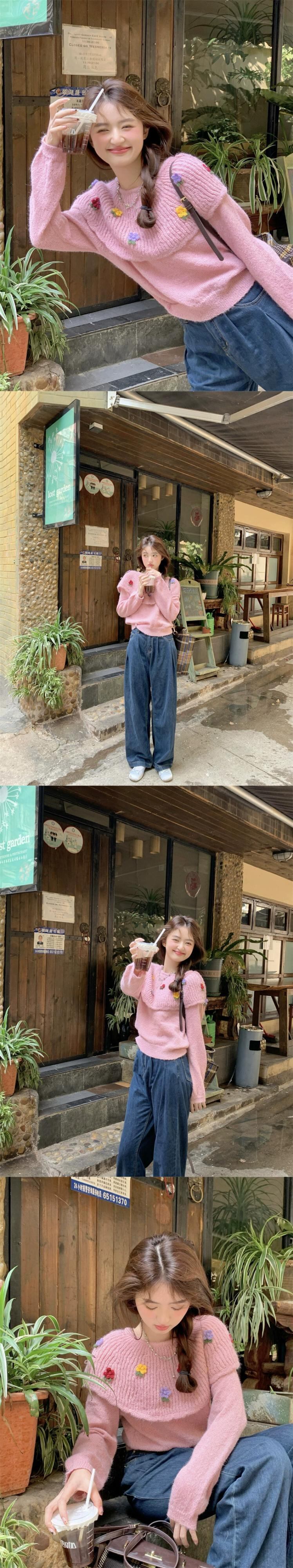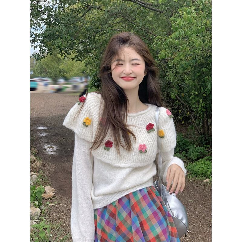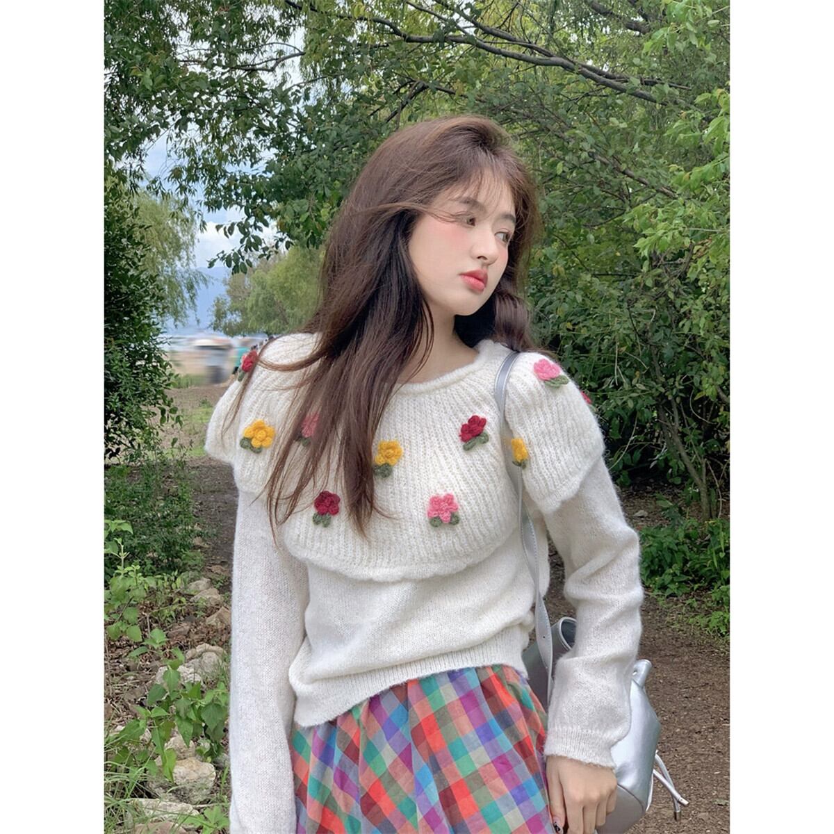 甘くてファッショナブルな老化防止長袖セーター2023年秋の新デザイン重工業立体フラワートップ婦人服 ロング 大人ガーリー スウィート キュート カジュアル オータム 秋物 フラワーデザイン missk48239990691
