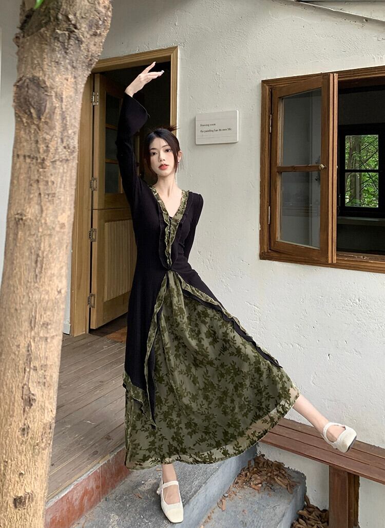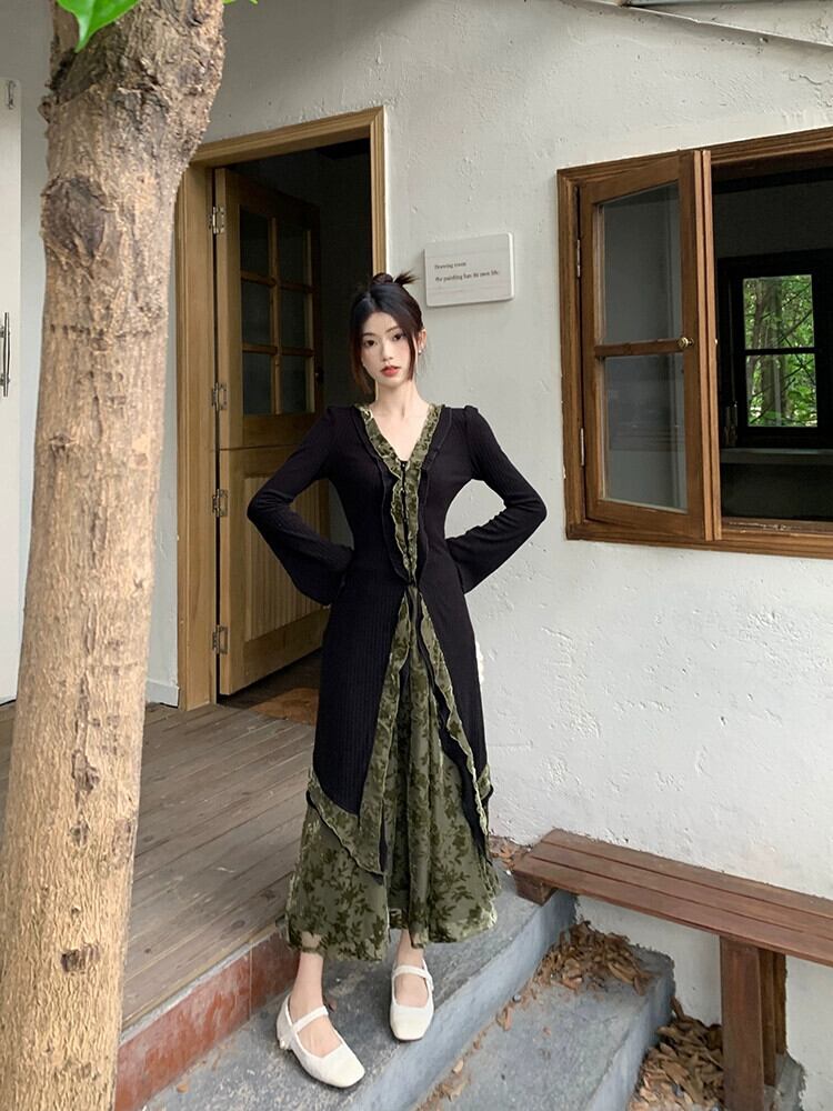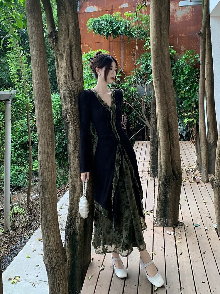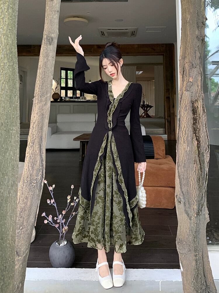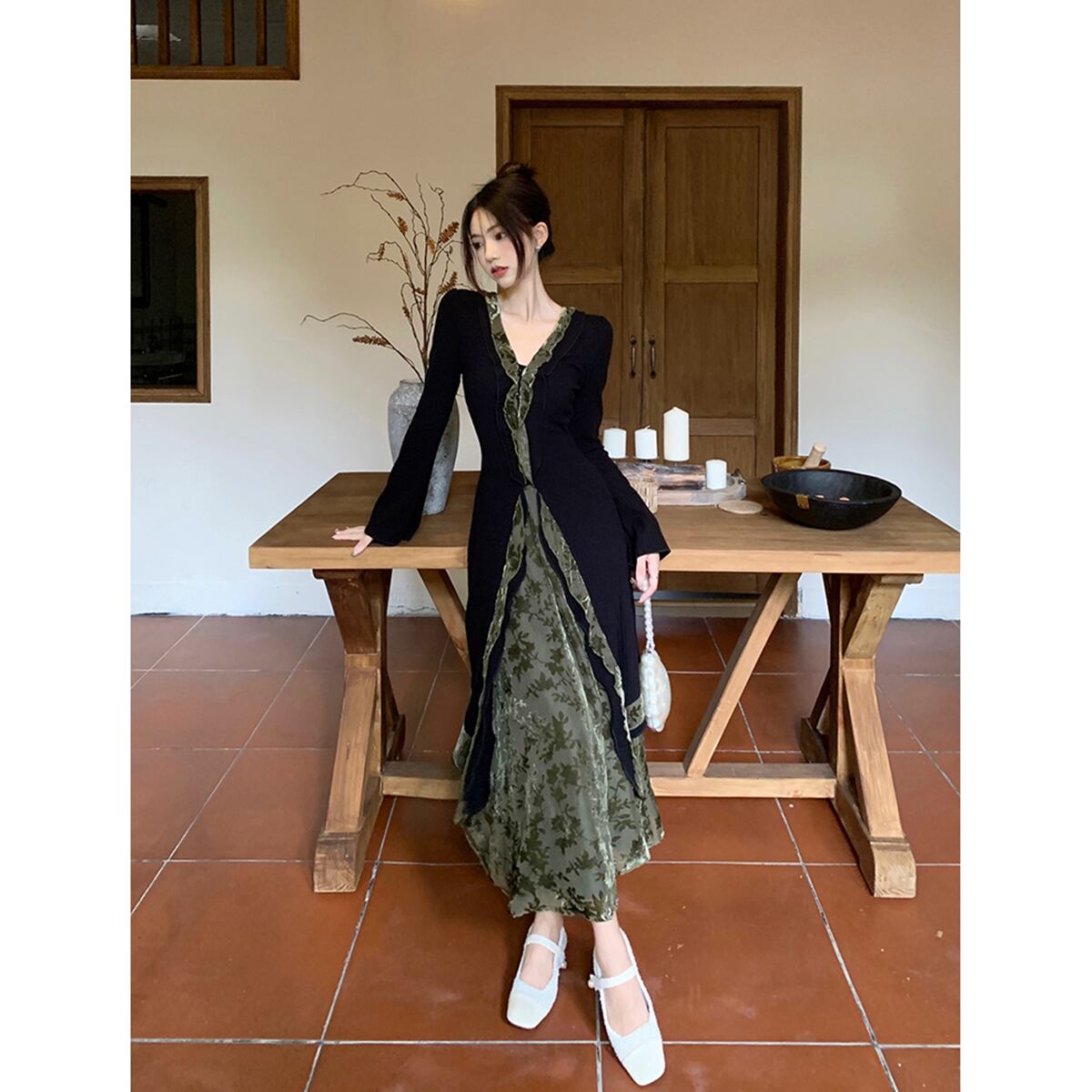 中国風のエレガントな気質ロングウエスト長袖カーディガンベルベットスカート女性秋 2023 新しいツーピースセット オータム 秋物 missk86798098121