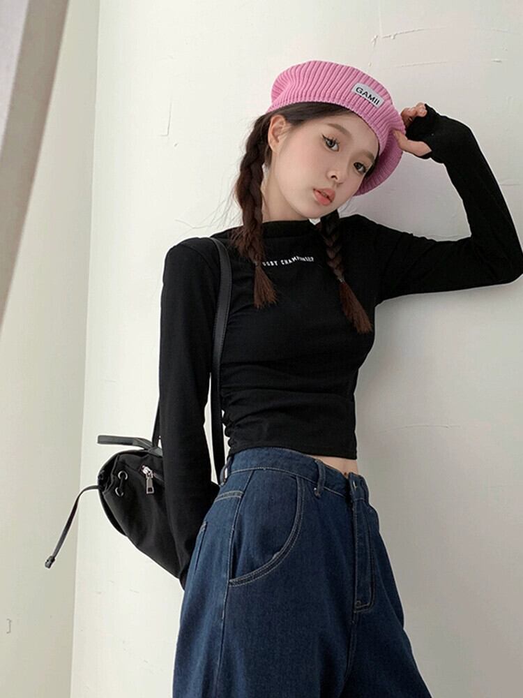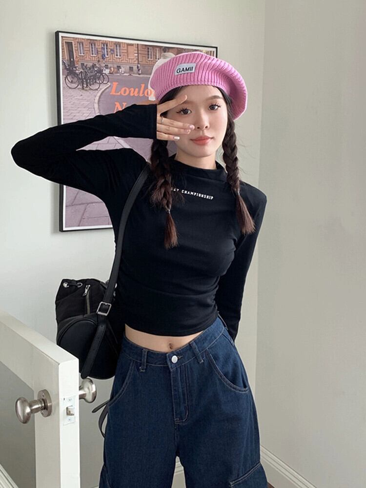 ハーフタートルネックイン白アウター Tシャツ夏新スリムショートレター底トップ婦人服 ホワイト サマー 夏物 missk82736019688
