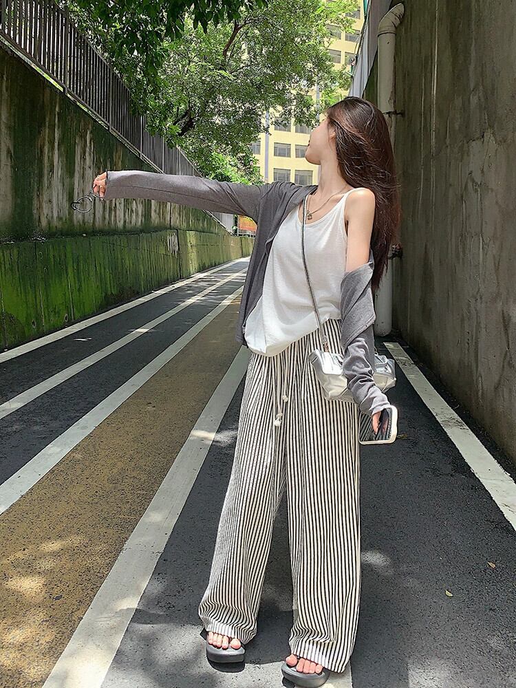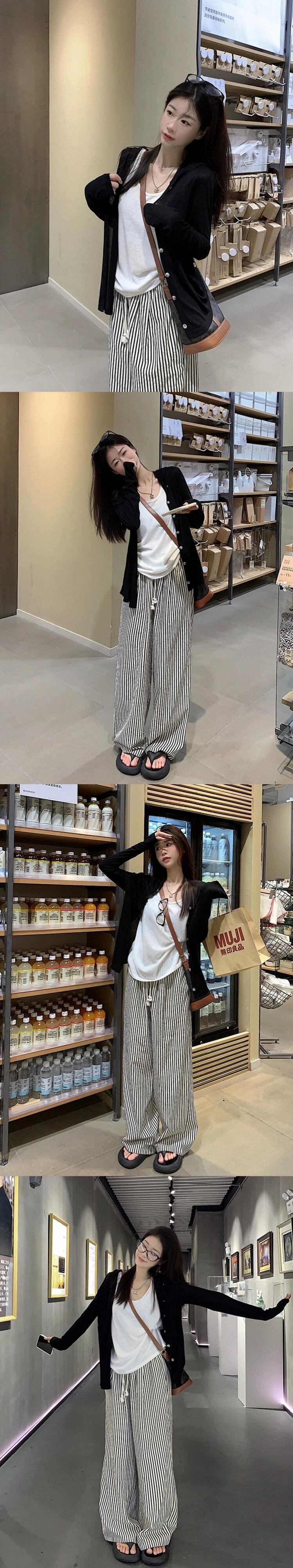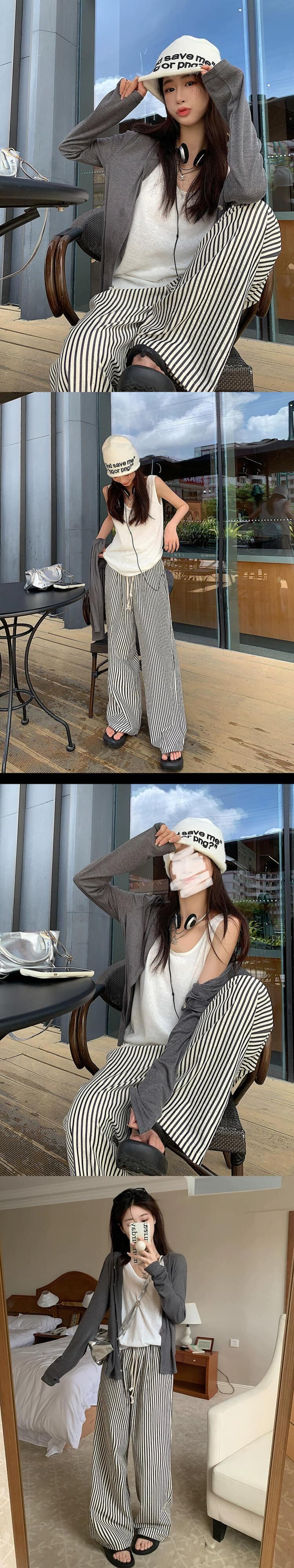 色:カーディガン,ベスト,ストライプパンツ,ブラックカーディガン