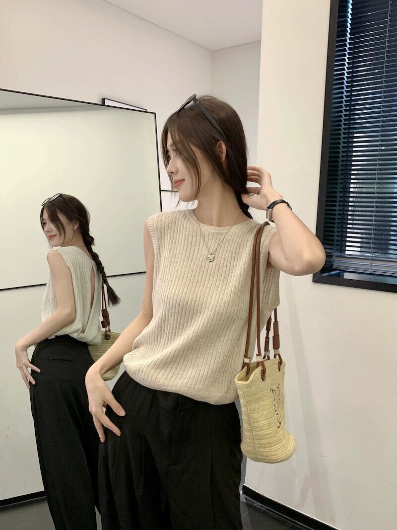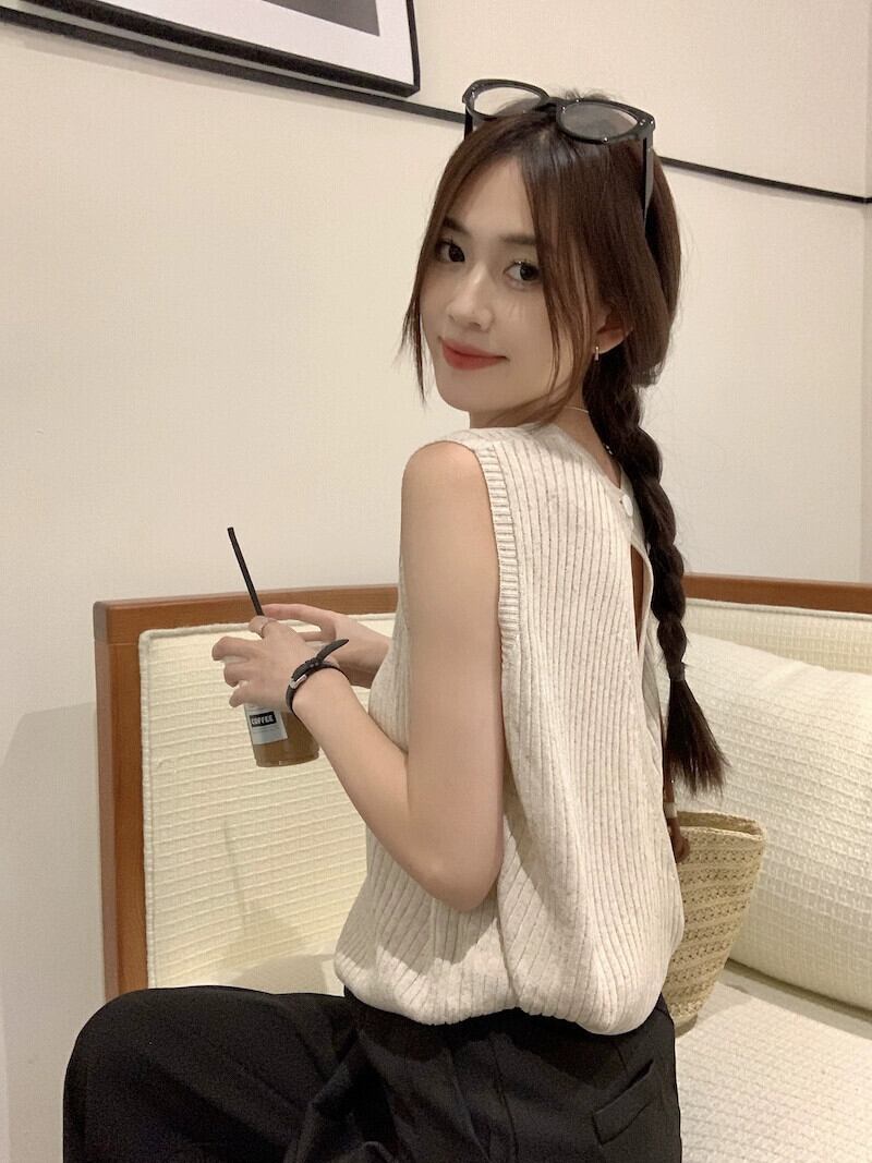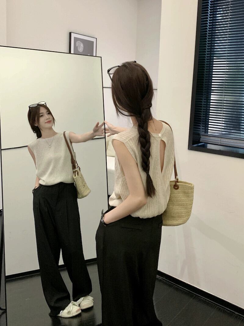 クロスバックレスセーター女性の秋 2023 新しいフレンチレトロデザイン eign スタイルノースリーブベストトップ オータム 秋物 missk25694389421