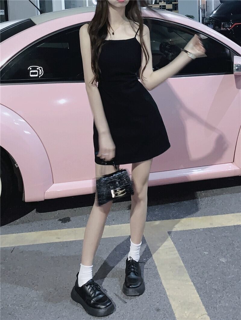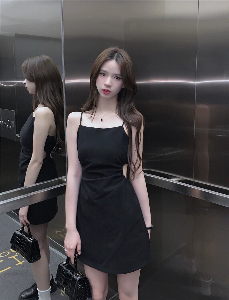 ホットスタイルデザインニッチドレス夏の新しい人格純粋な欲望ウエストウエスト黒サスペンダースカート女性 ブラック サマー 夏物 ピュア missk86429749550