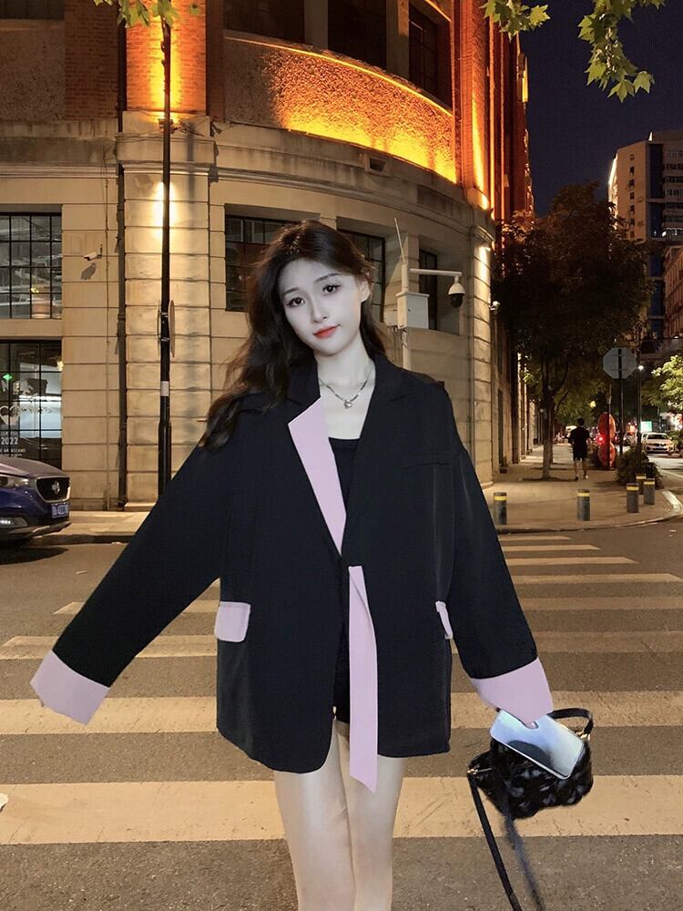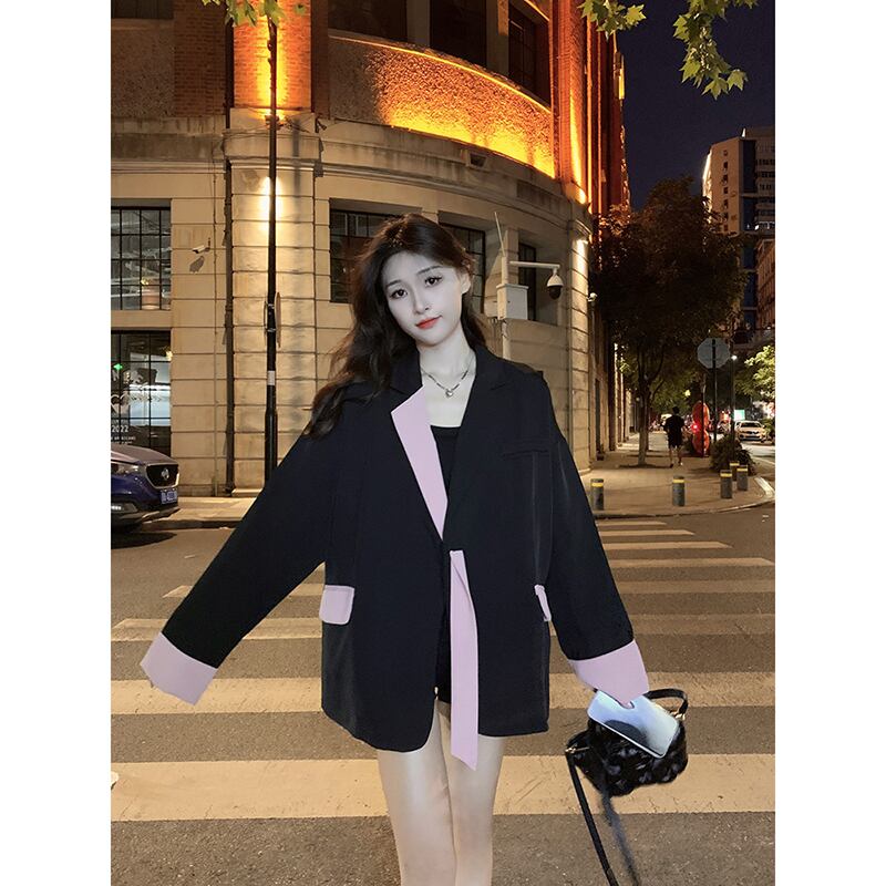 長袖スーツジャケットの女性、2023秋バージョンの新しいスタイルのコントラストカラーのリボンデザイン、ゆったりとしたミドル丈のトップがトレンディです ロング オータム 秋物 missk84176380477