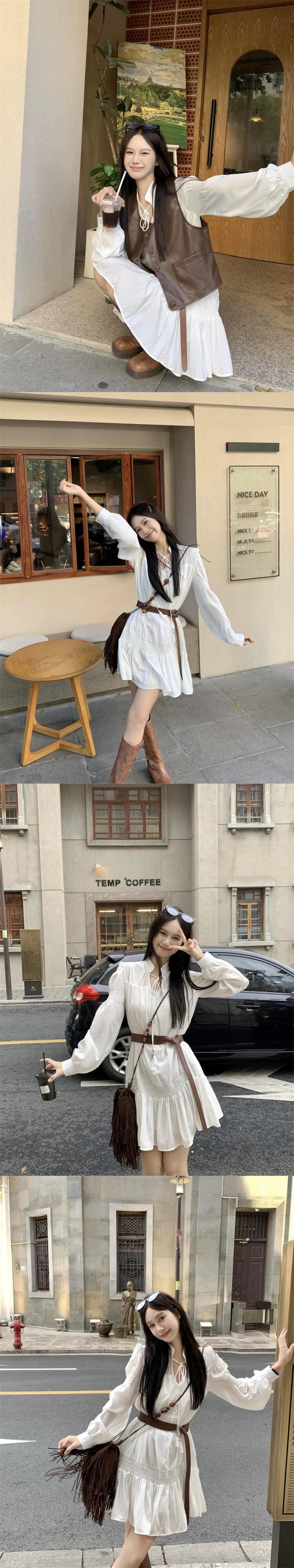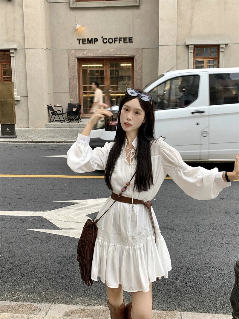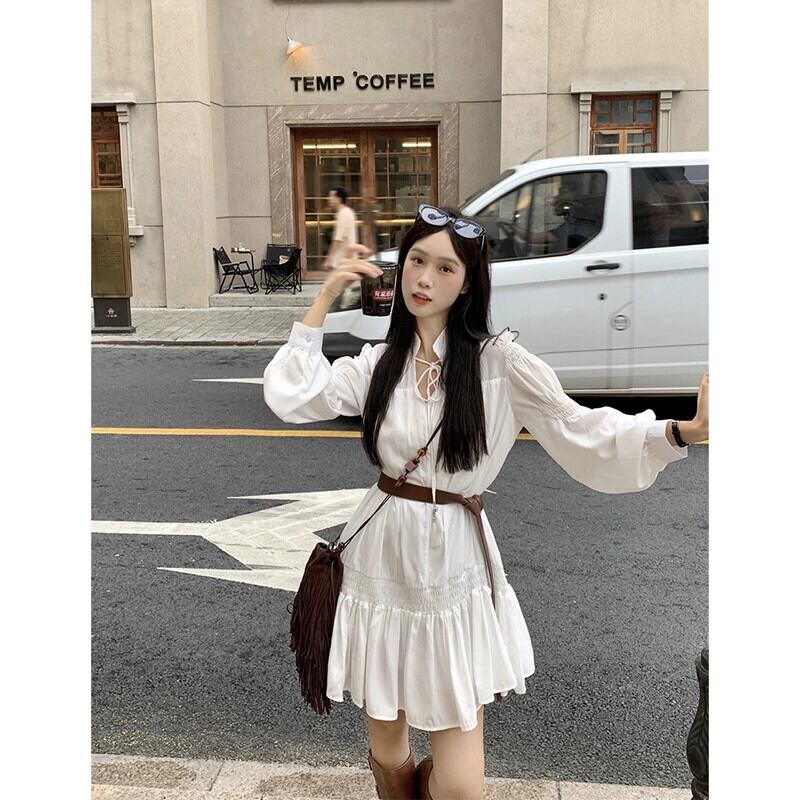 甘くてクールなデザインのストラップ付きPUレザーベスト、スタンドアップカラー、長袖ドレス、女性の2023年秋の新しいファッションスーツ ロング 大人ガーリー スウィート キュート カジュアル オータム 秋物 missk85107902583