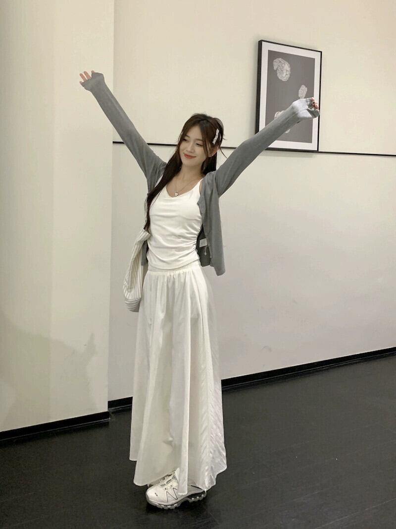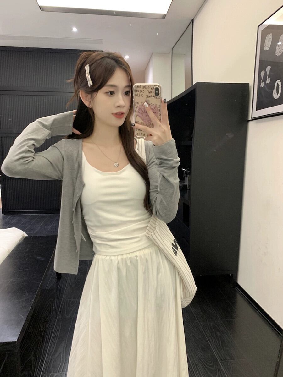 薄手長袖カーディガンボトキャミソール白ロングスカートレディース2023秋新作ファッション3点セット ホワイト オータム 秋物 missk93658738914