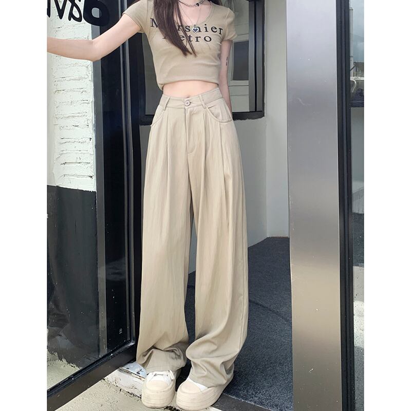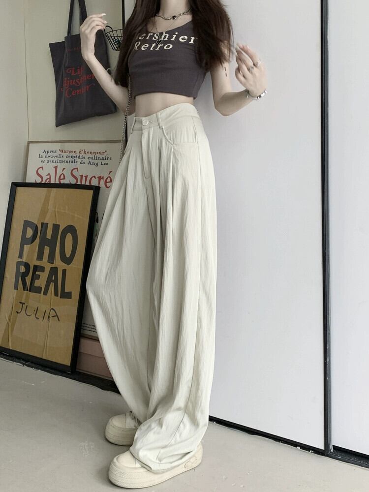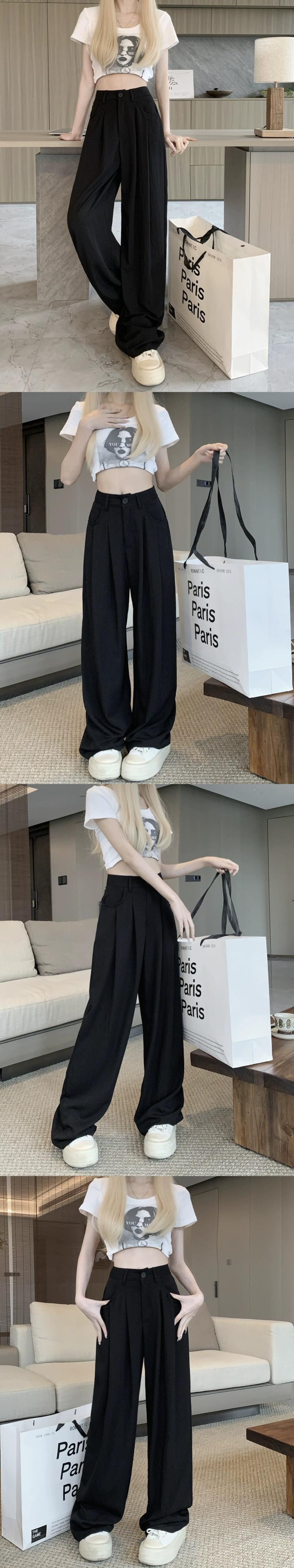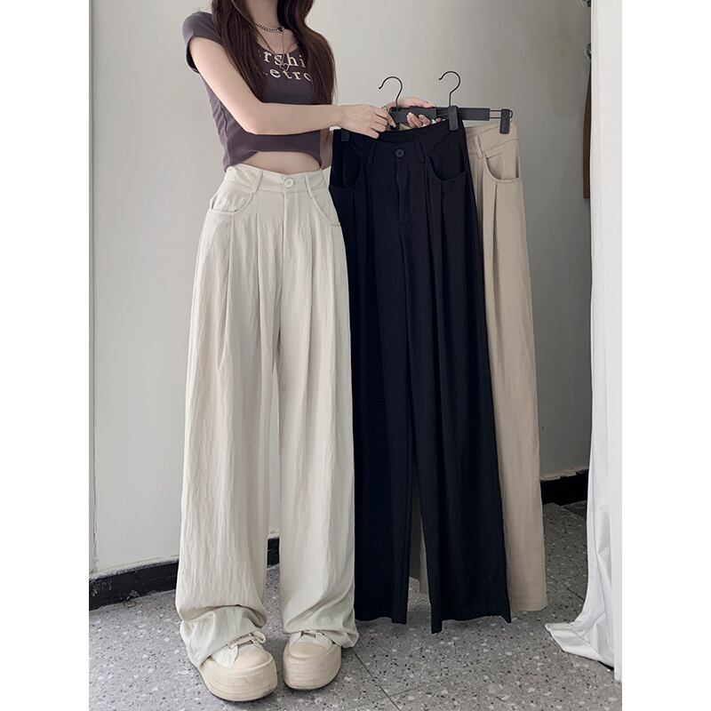 弾性ウエストドレープワイドレッグパンツ女性夏バージョン 2023 新しいハイウエストスリムブラック通気性プリーツカジュアルパンツ ハイウェスト エラスティック 伸縮 サマー 夏物 ワイドパンツ missk63348930007