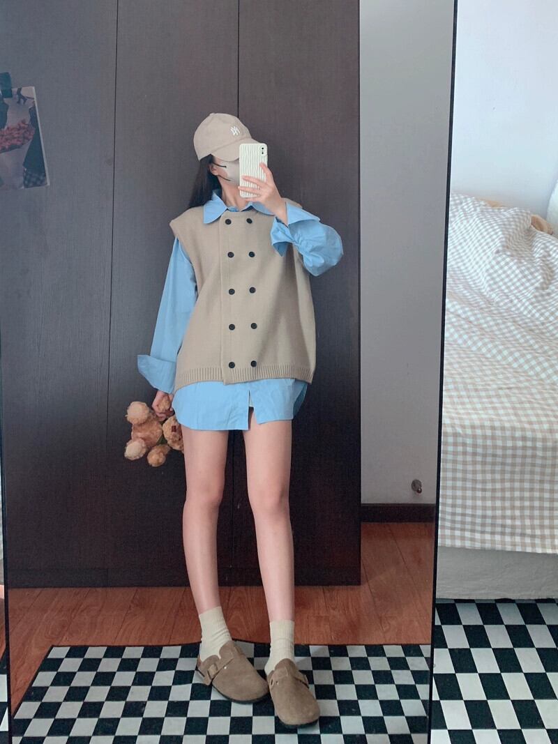 シックなレイヤードニットベスト女性初秋2023新しいスタイルのデザインファッショナブルで多用途なトップ レッド オータム 秋物 missk20728959597