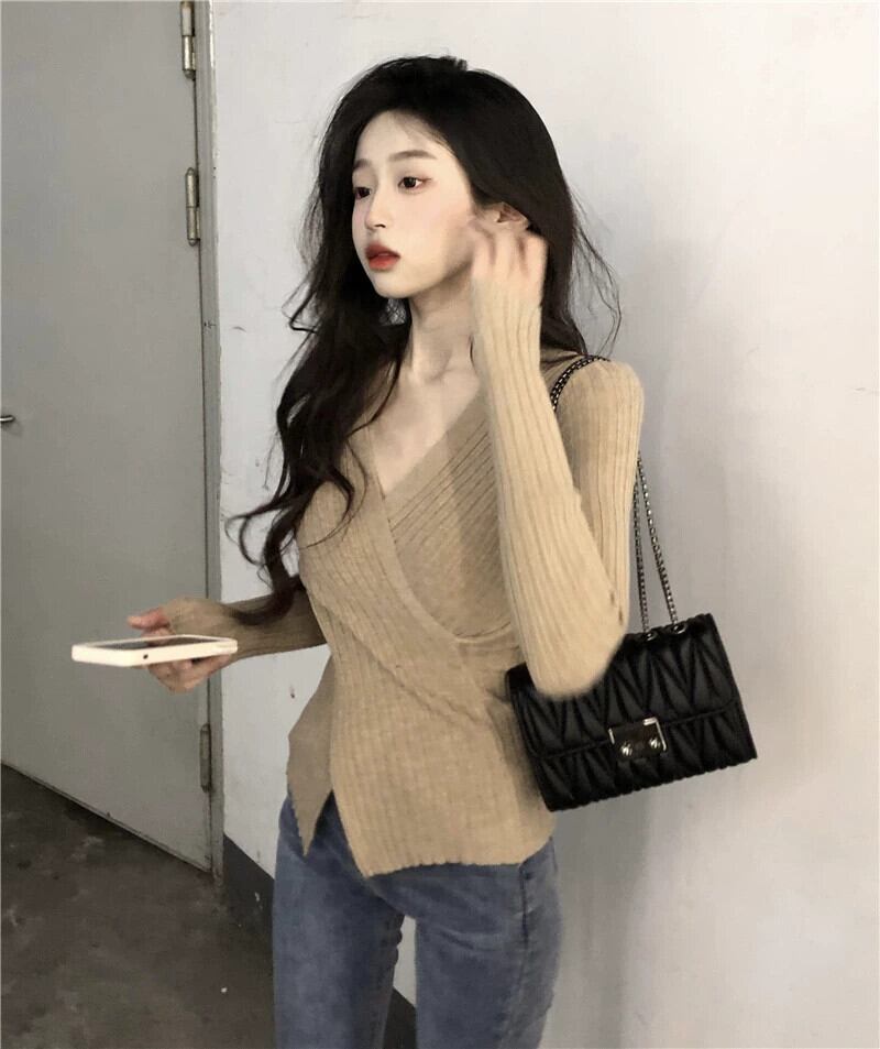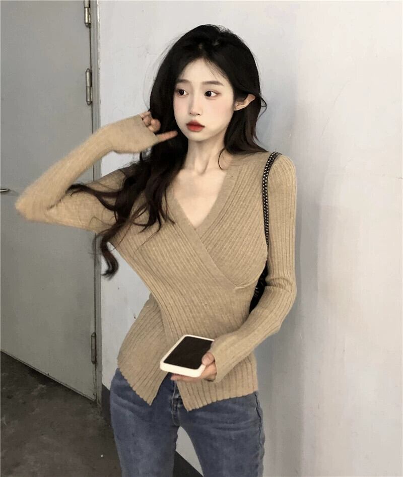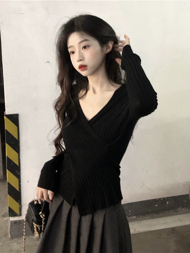 エドクロス V ネックセーター女性 2023 秋の新しいスタイルの純粋な欲望スタイル痩身インナー長袖トップ ロング オータム 秋物 Vネック ピュア missk59354715829