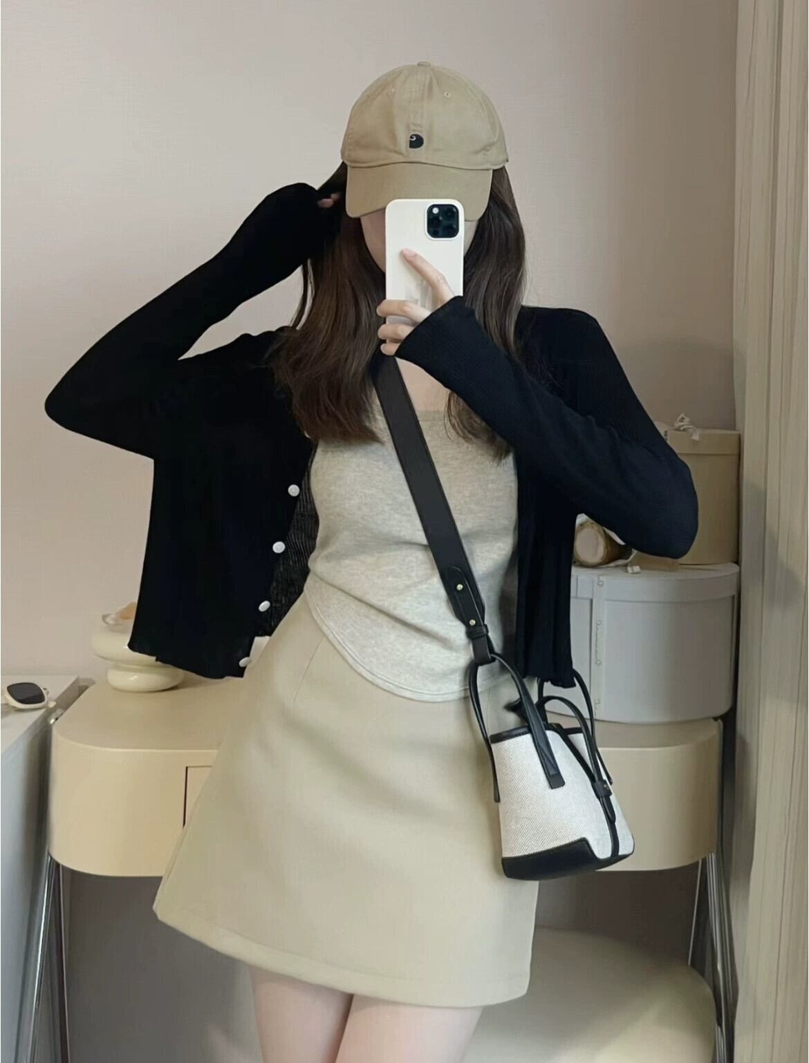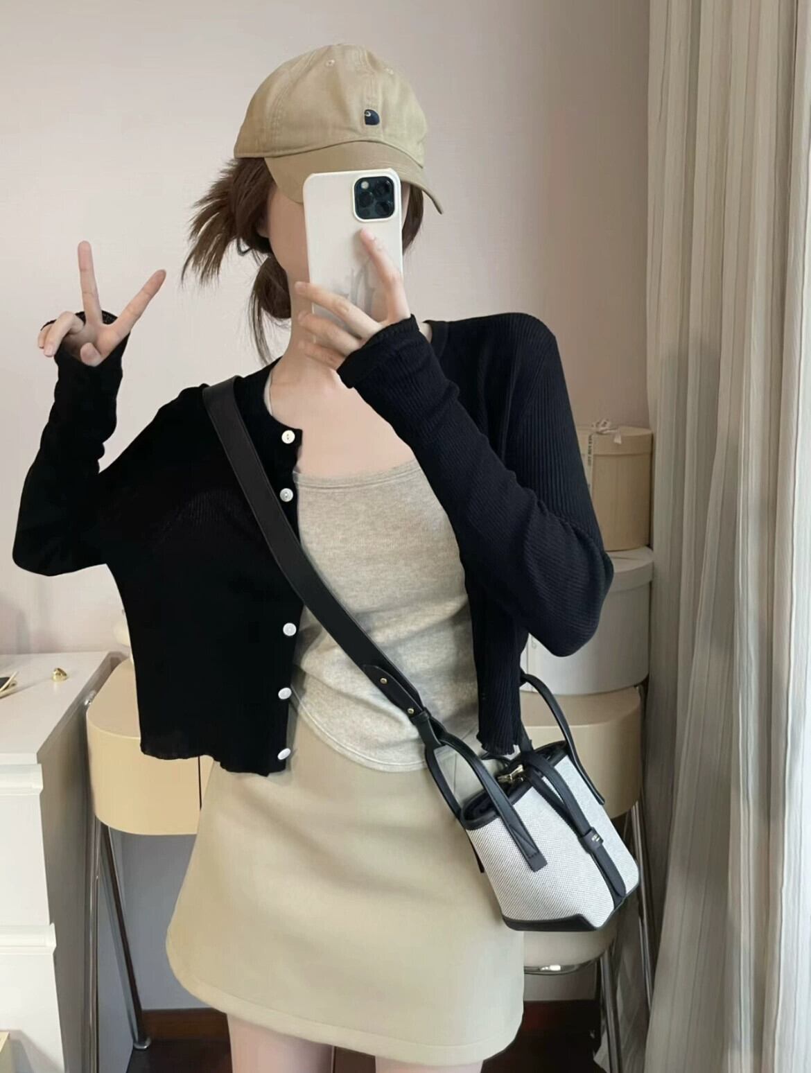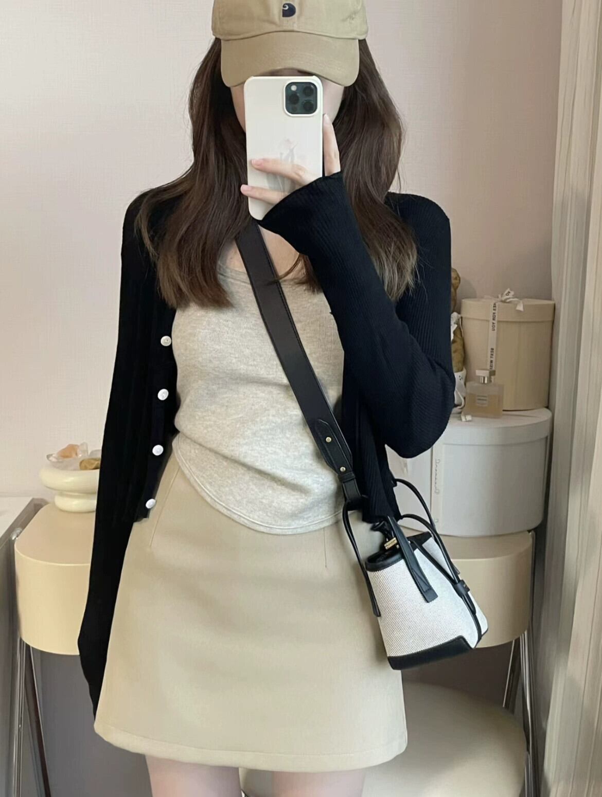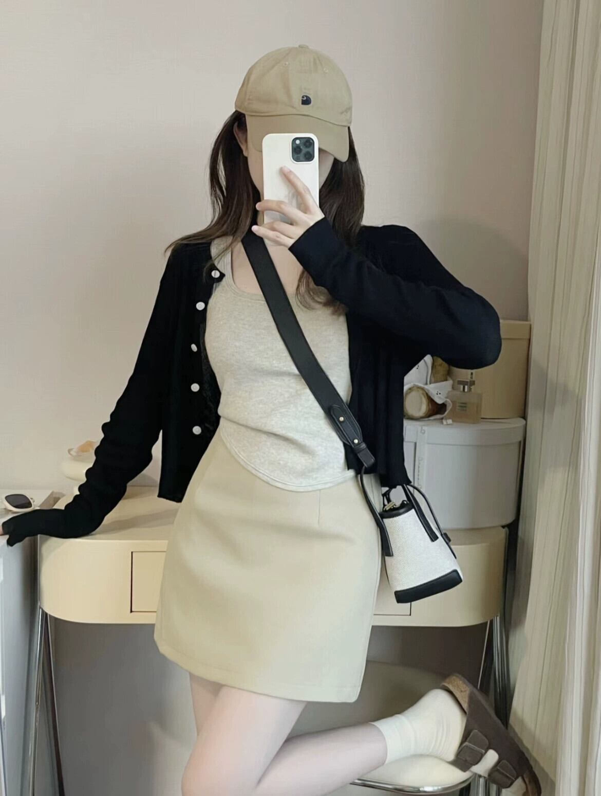 スタイル短い気質長袖カーディガン + ベスト + A ラインスカート女性秋 2023 新しいファッション 3 点セット ショート ロング オータム 秋物 Aライン missk5566340987