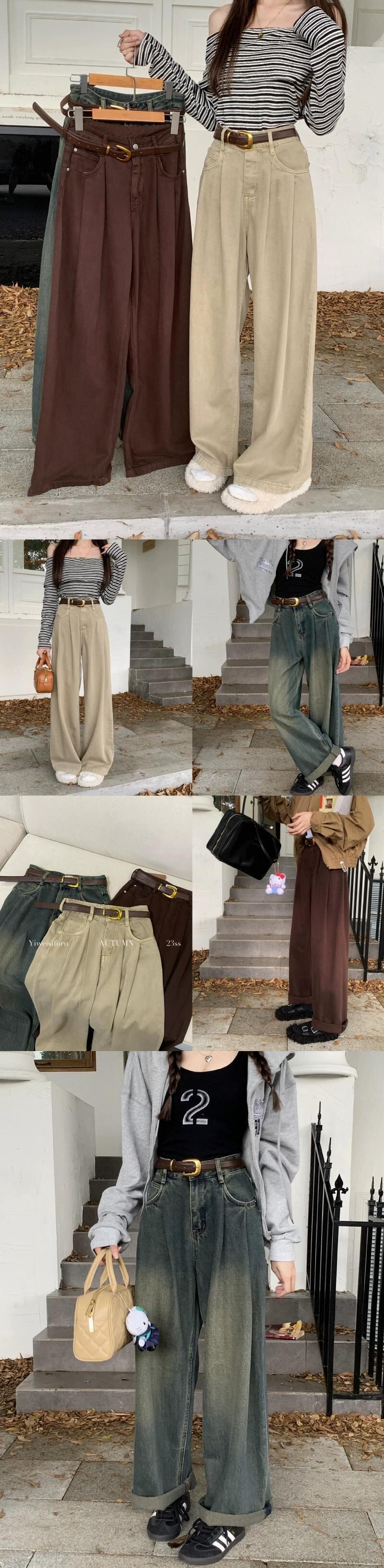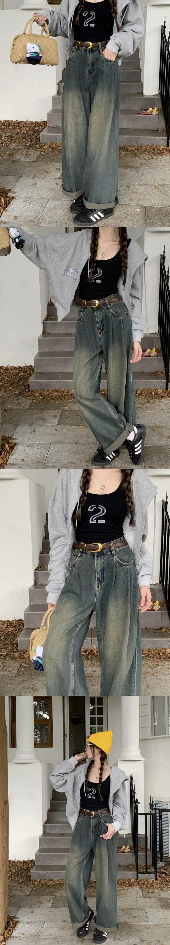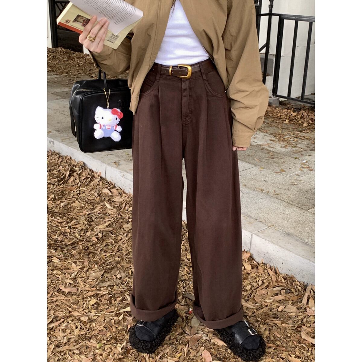 レトロデニム床長ズボンの女性 2023 秋の新しいハイウエスト痩身ルーズワイドレッグストレートパンツトレンディ オータム 秋物 missk13419010550