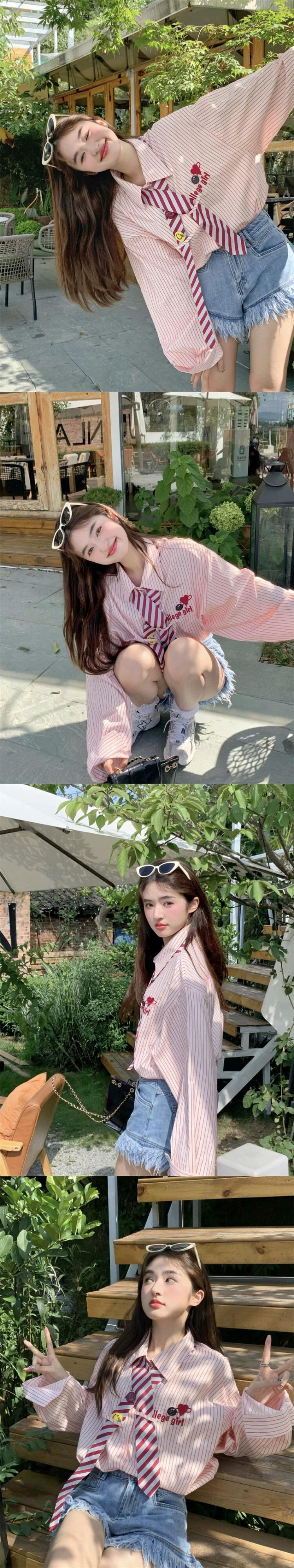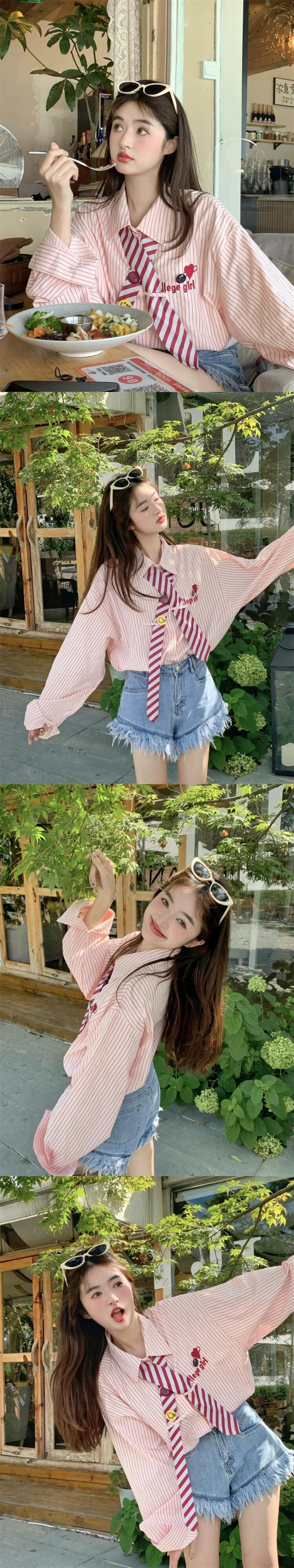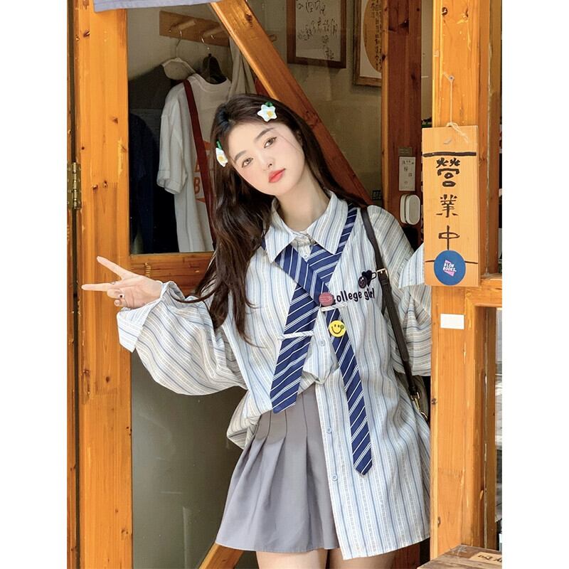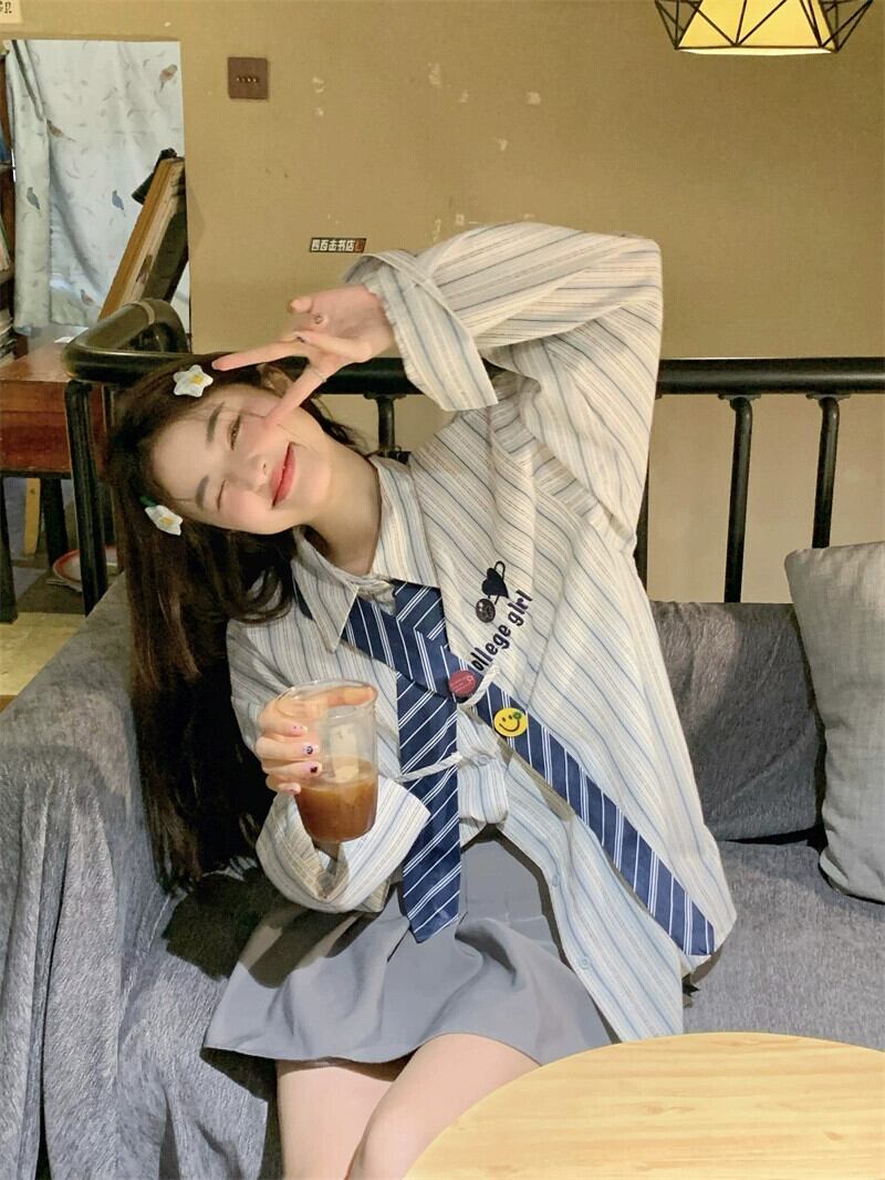 スタイルストライプ刺繍長袖シャツ女性の 2023 秋の新デザインニッチルーズシックカーディガン ロング レッド missk14605058837