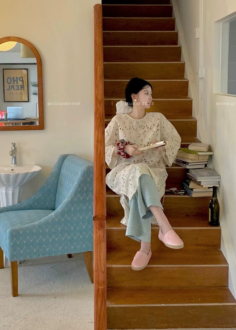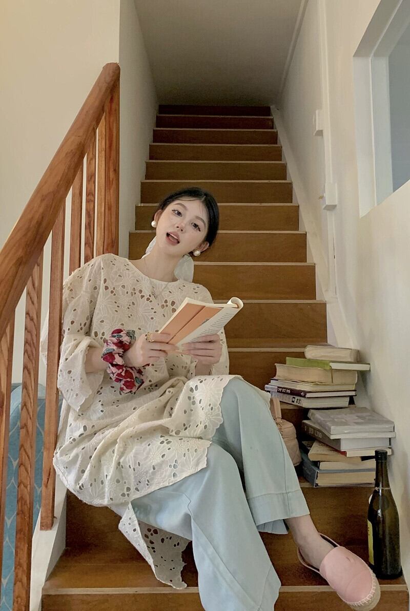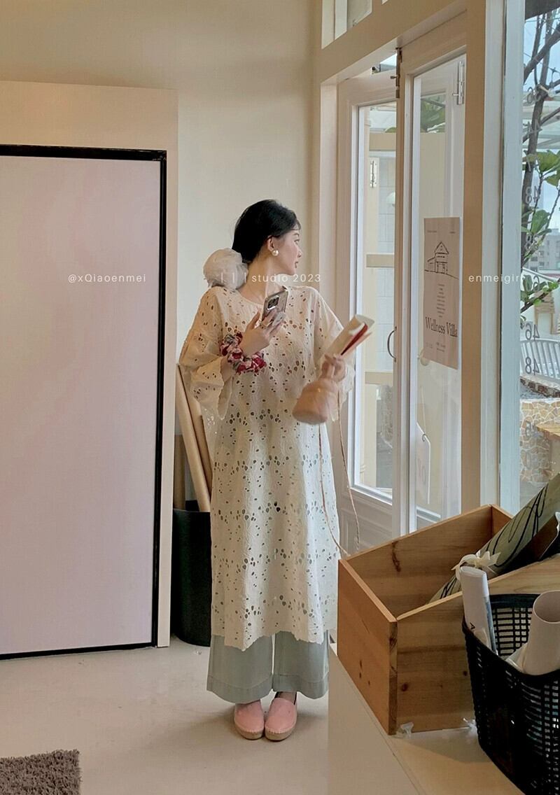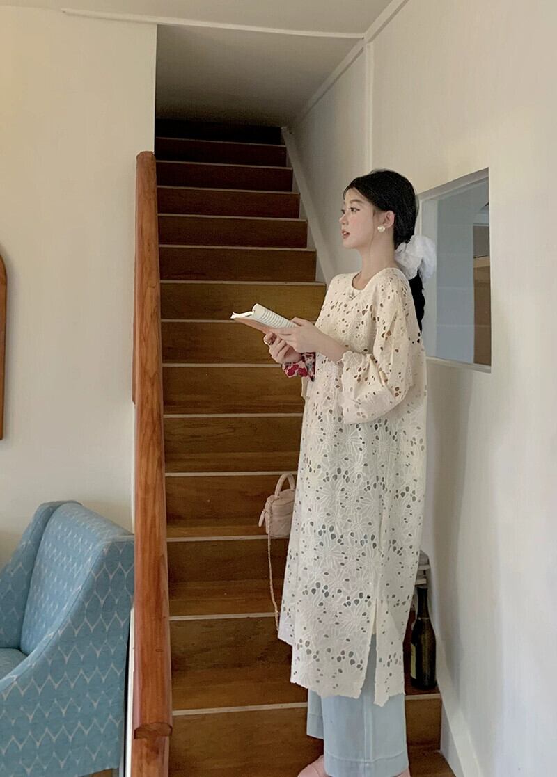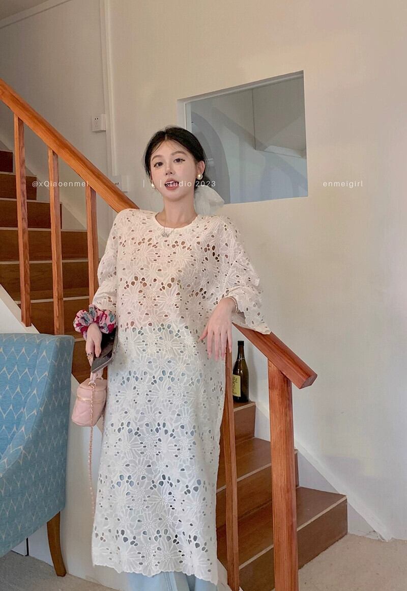 重工業中空かぎ針編みドレスの女性の夏 2023 シックな怠惰なスタイルルーズ長袖日焼け止めロングスカート サマー 夏物 missk67225774996