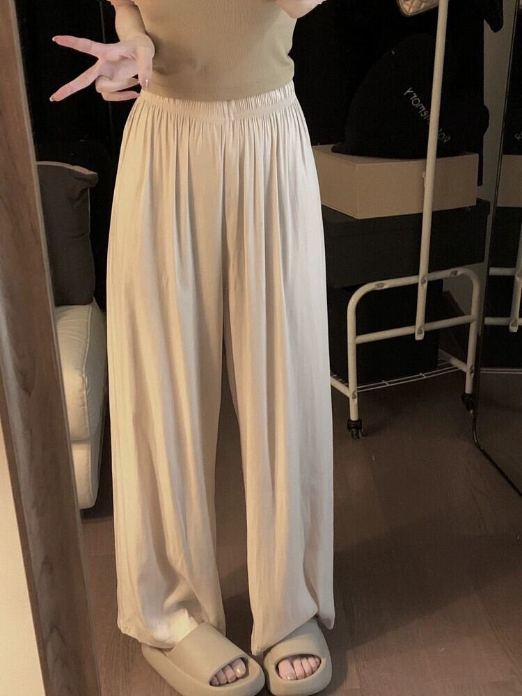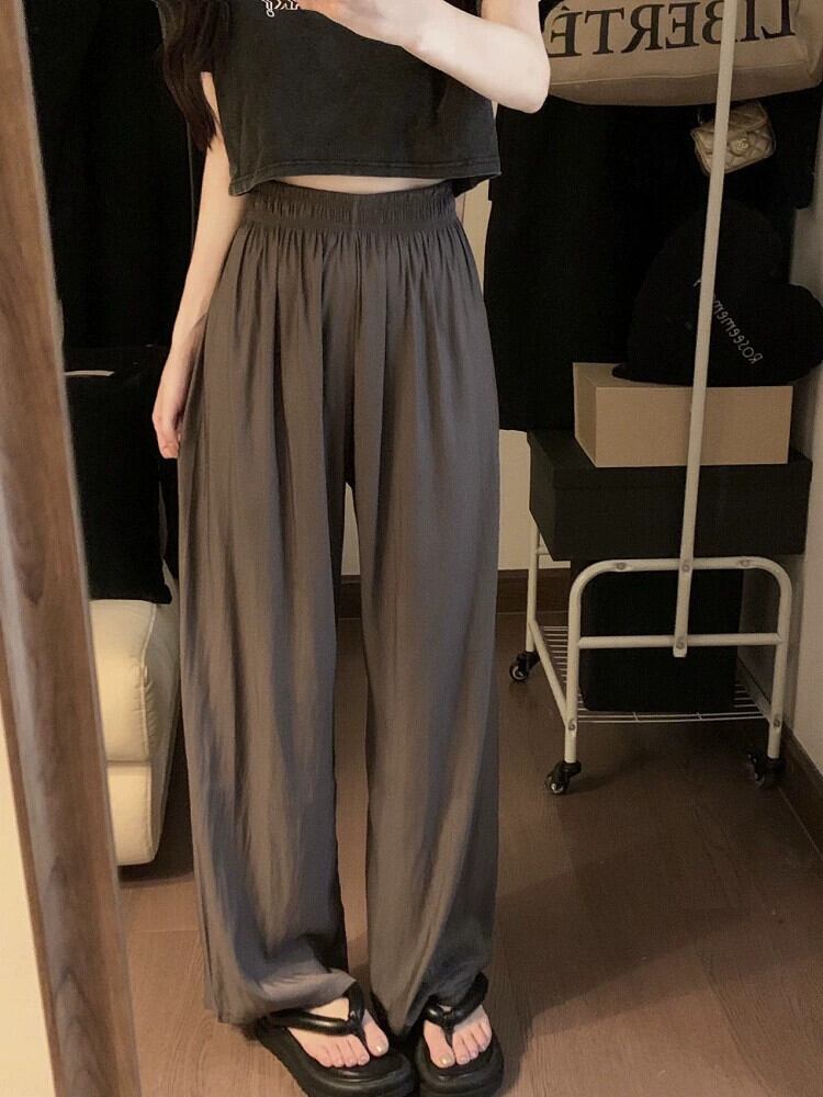 怠惰なスタイルのワイドレッグパンツ女性の夏のスタイル 2023 新しいハイウエストスリムとドレープ多用途クールカジュアルパンツ サマー 夏物 missk8976730550