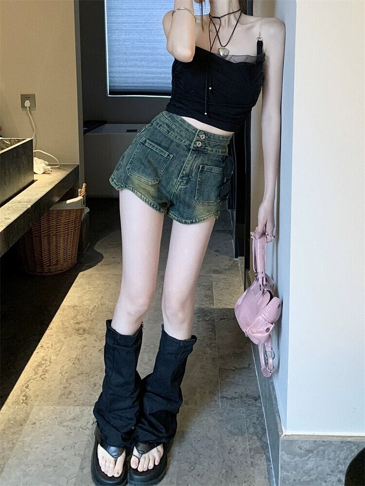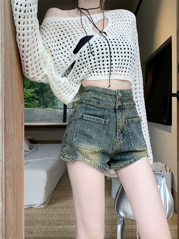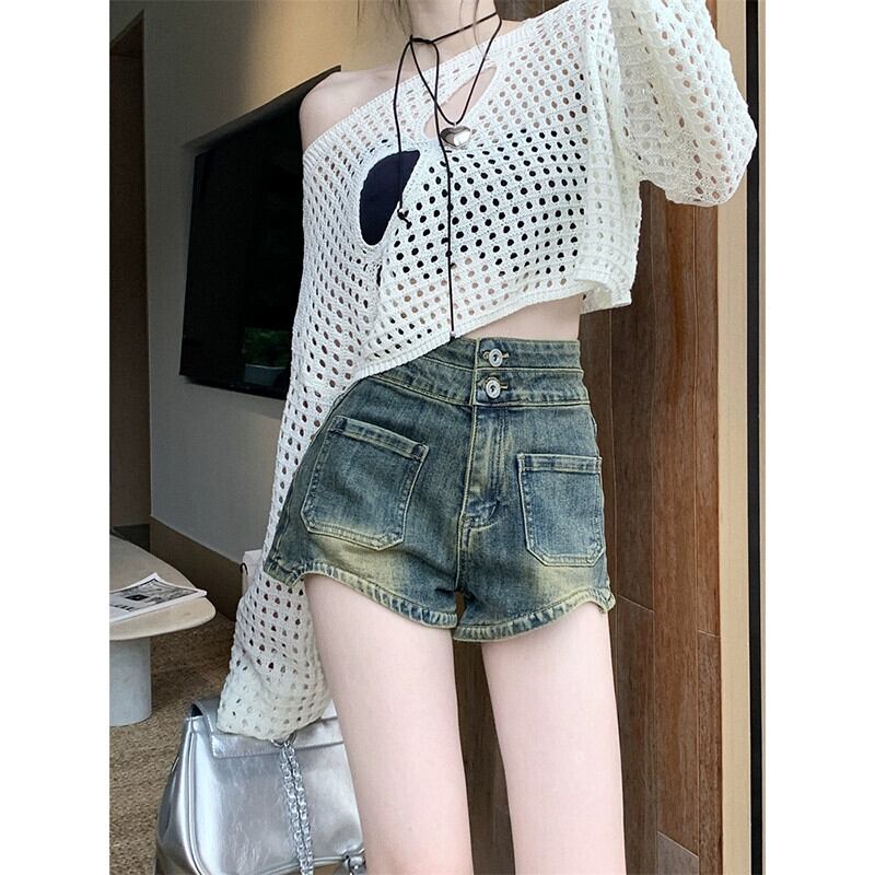 レトロなダメージ加工デニムショートパンツの女性の夏 2023 新しいハイウエスト痩身ハイエンド多用途 A ラインパンツ サマー 夏物 ショーツ ブルマー Aライン missk66568670006