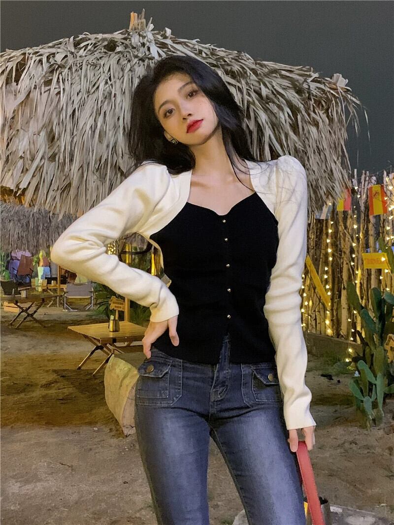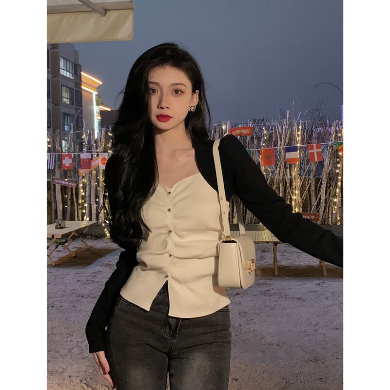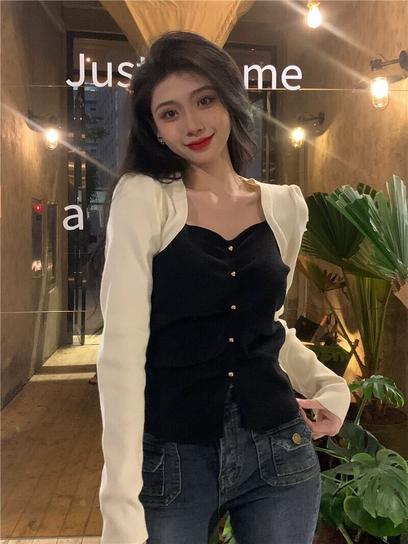 パフスリーブセーターレディース2023年秋新作フレンチニッチコントラストカラースリムフィットシック長袖シャツ ロング オータム 秋物 missk75860434924