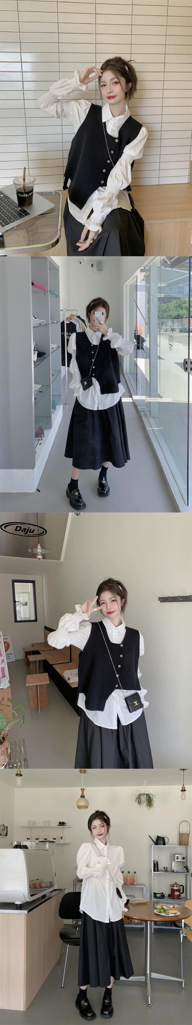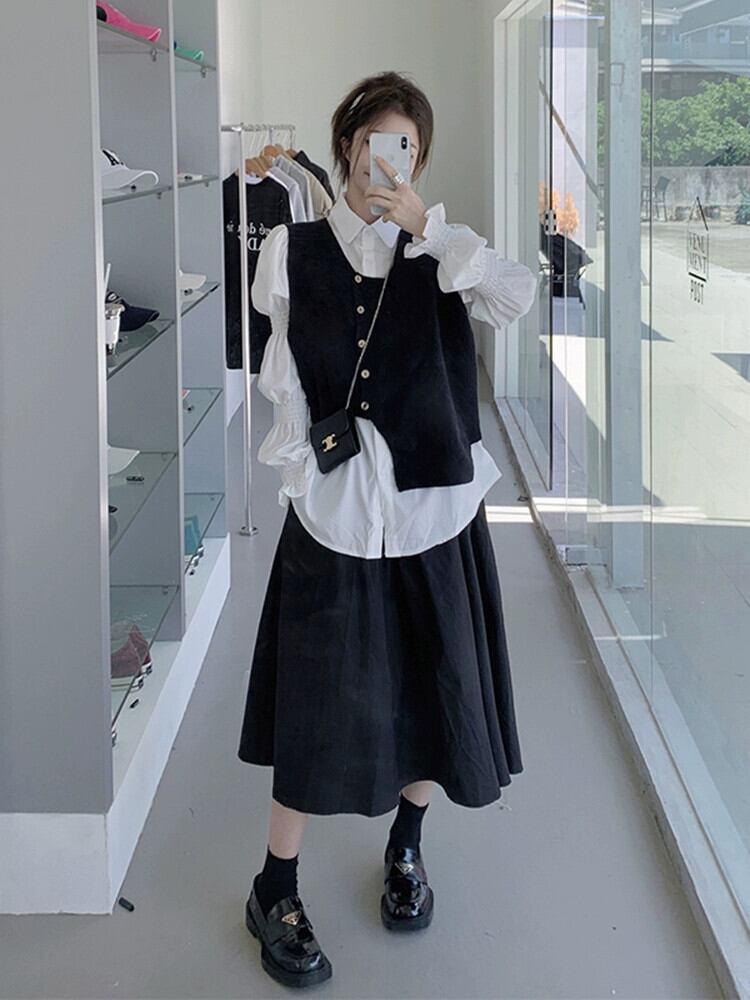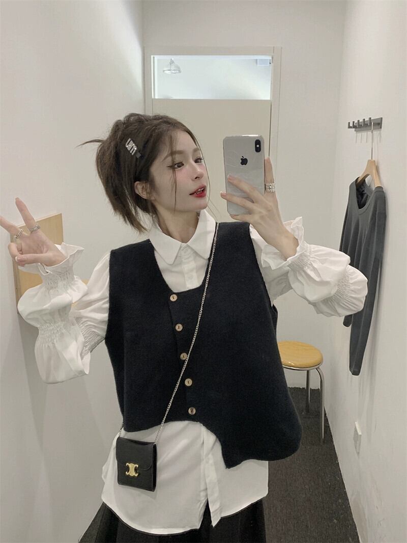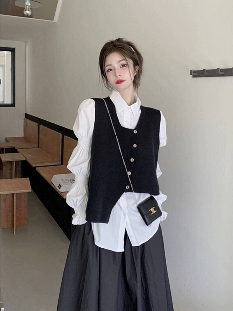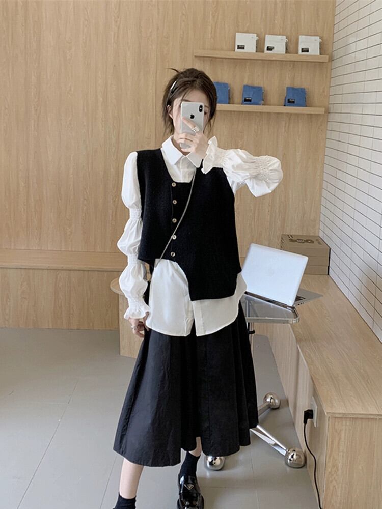 不規則なニットベストファッションスーツデザインバブル長袖シャツハイウエストスカート秋の新しいスタイルの女性 ロング オータム 秋物 missk26404900212