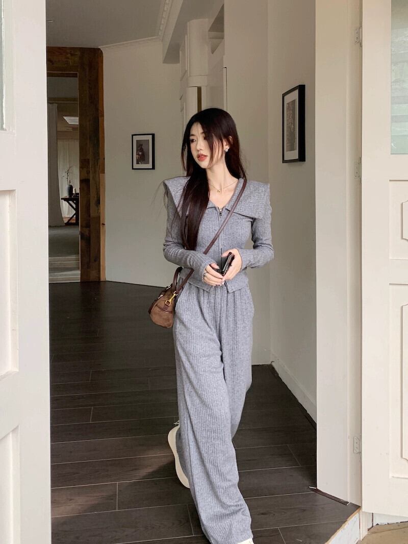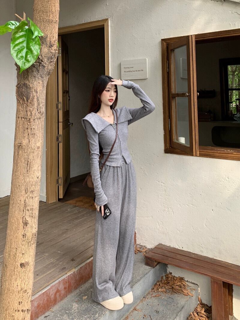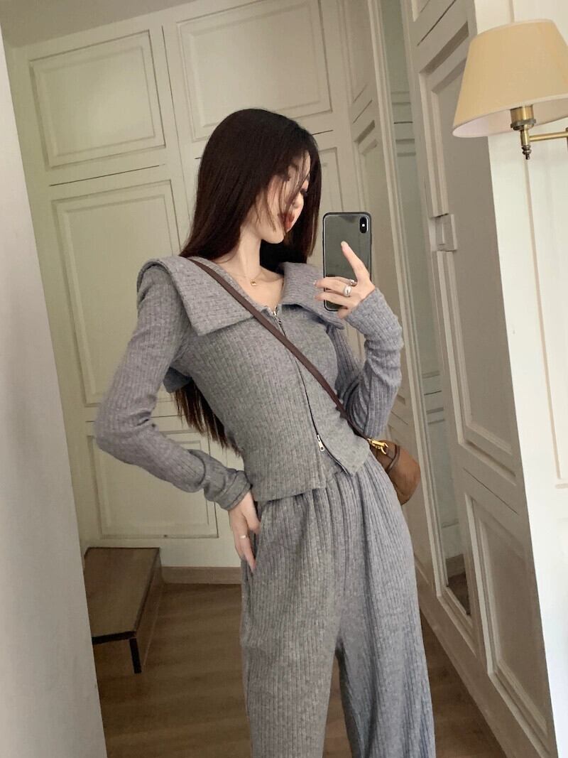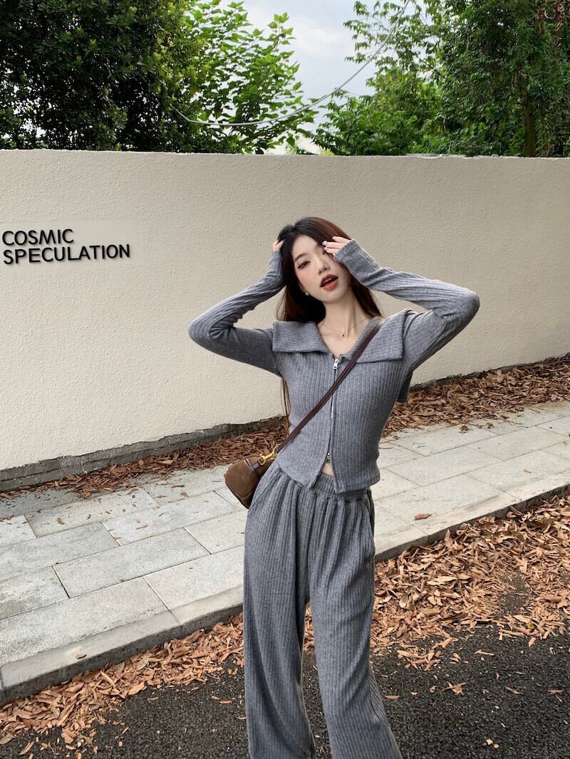 エドラペルショート甘いクール長袖ジャケットワイドレッグカジュアルパンツ女性の秋の 2023 新しいファッションスーツ ロング 大人ガーリー スウィート キュート オータム 秋物 missk76241635632