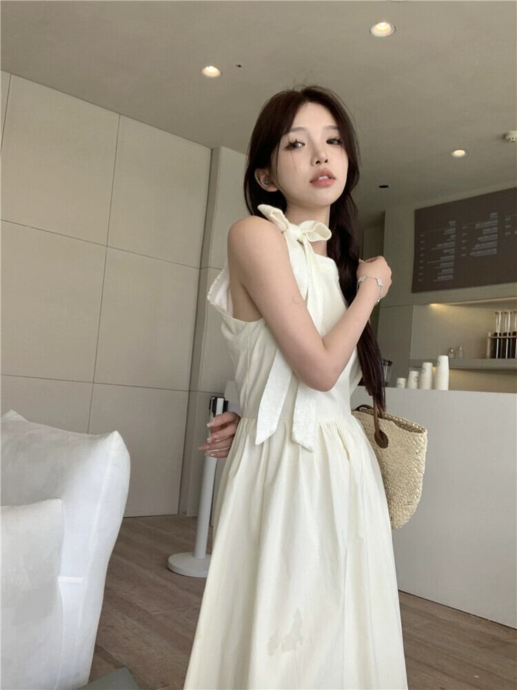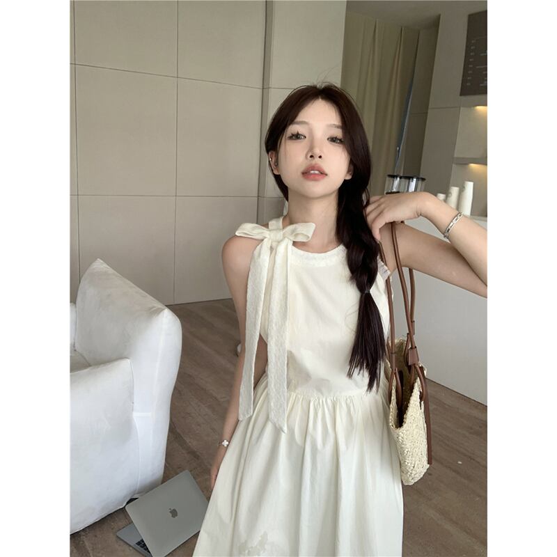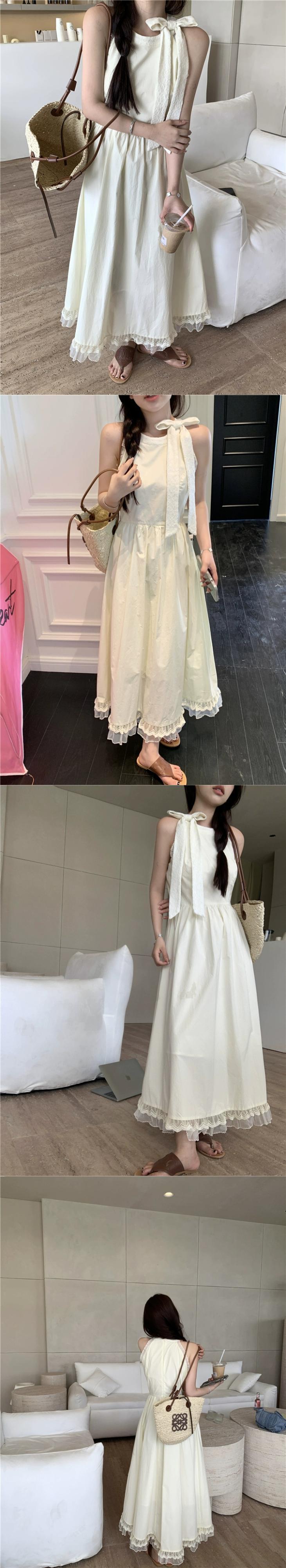フレンチレースホルターネックドレス女性の夏の新しいスタイル優しいハイウエストプリーツニッチスプライシングロングスカートトレンディな ハイウェスト サマー 夏物 missk30040600295