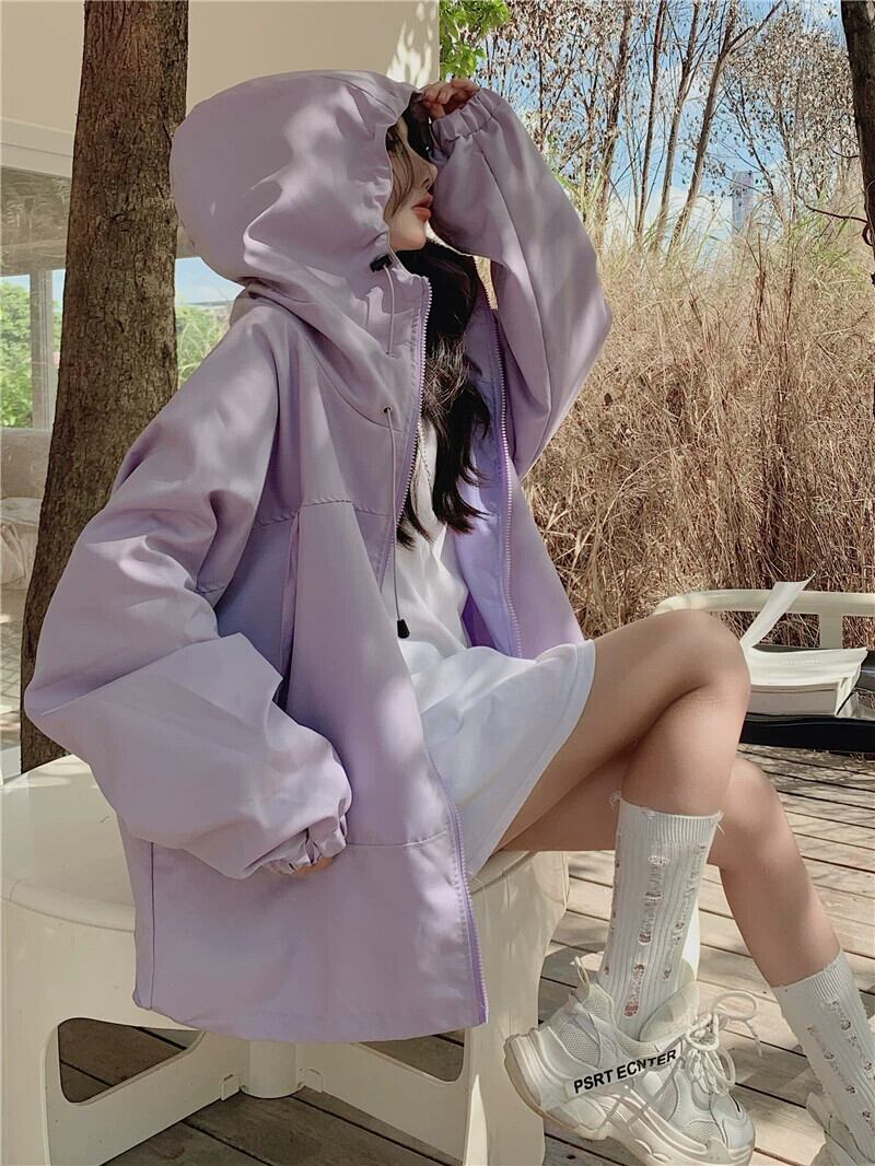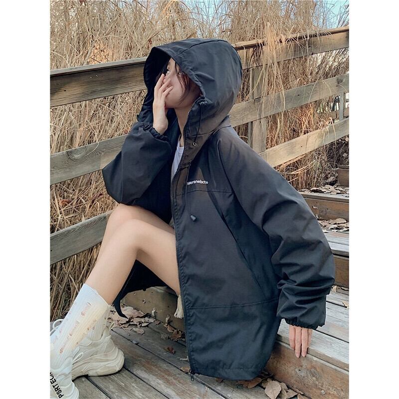 ワークスタイル長袖日焼け止めジャケット秋の新レトロカジュアルルーズフード付きミッドレングストップ女性 ロング オータム 秋物 missk33199446636