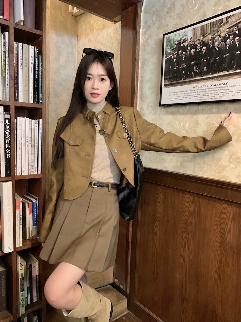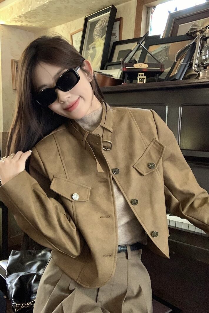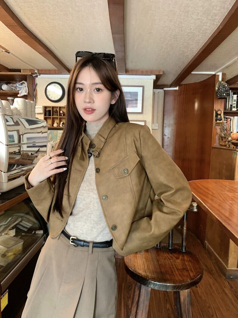 レトロレザージャケットの女性秋 2023 新デザイン小ショートルーズオートバイジャケット長袖ジャケット ロング オータム 秋物 missk13663070454