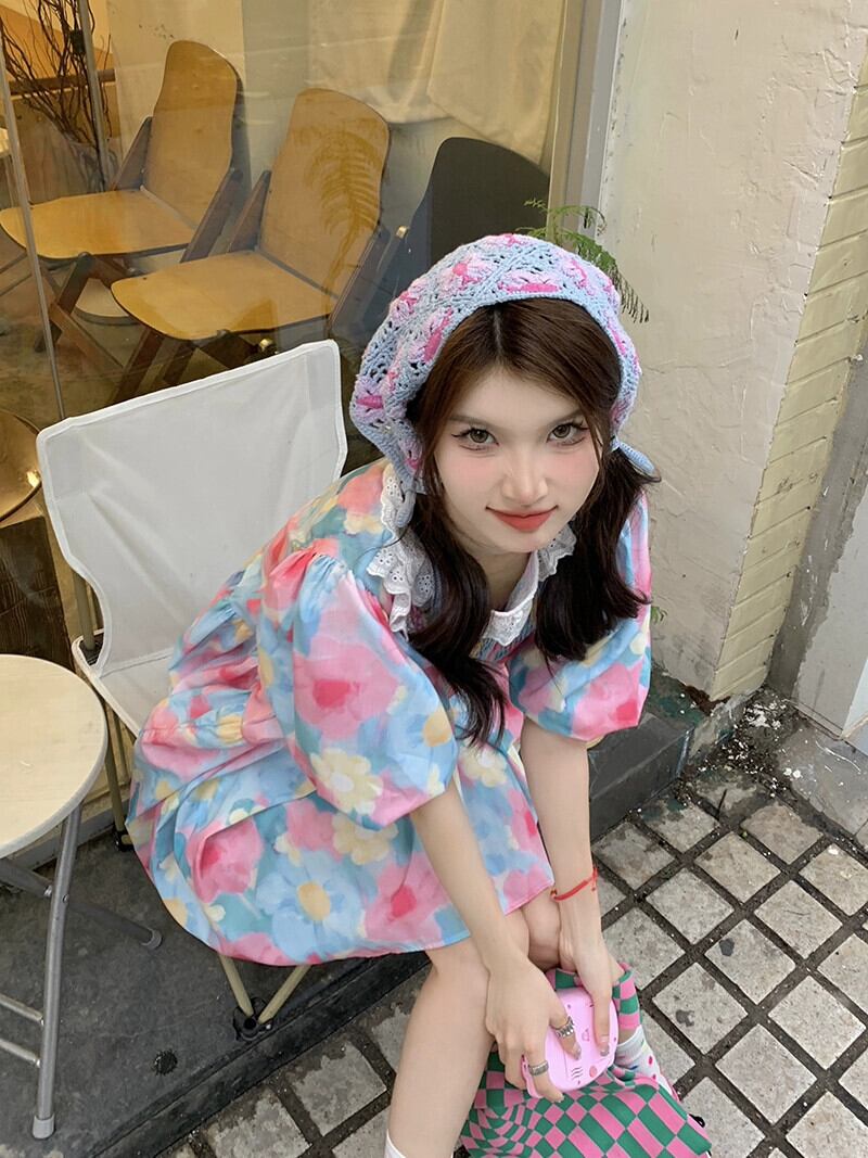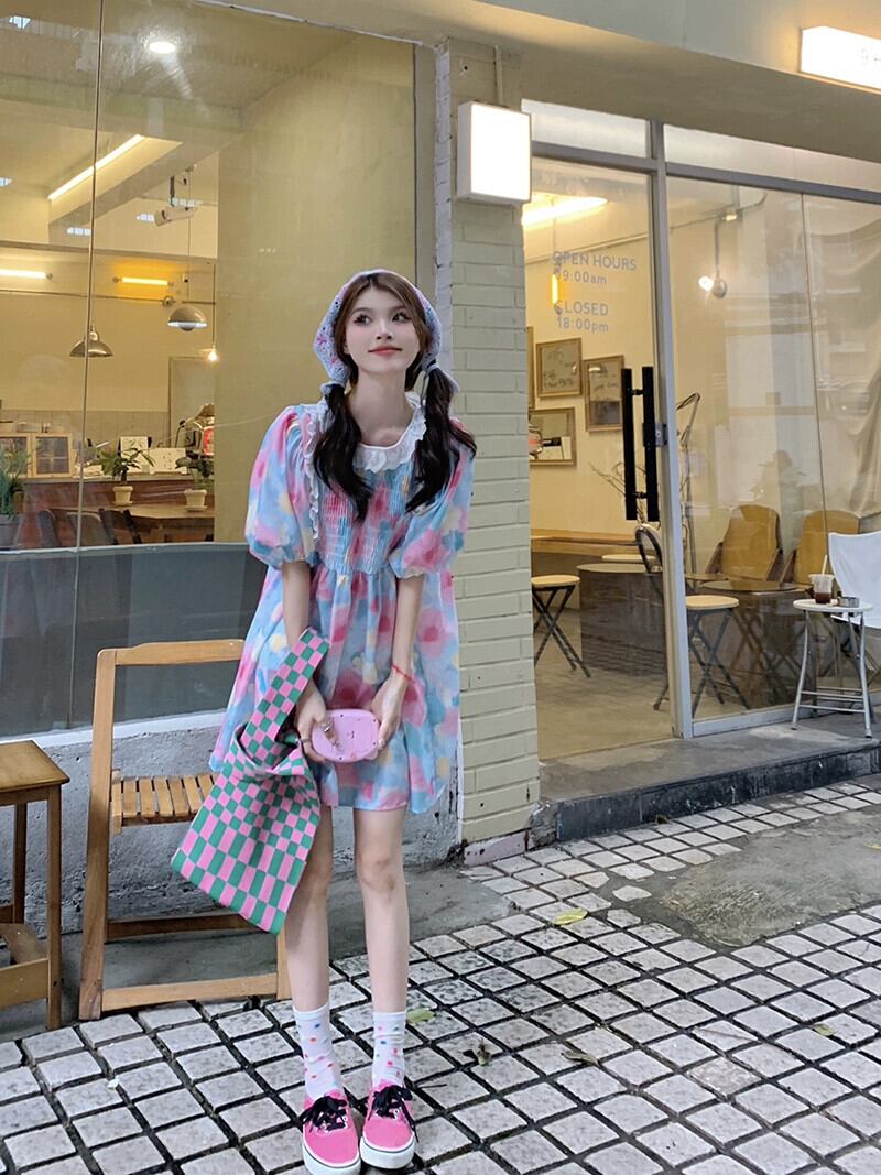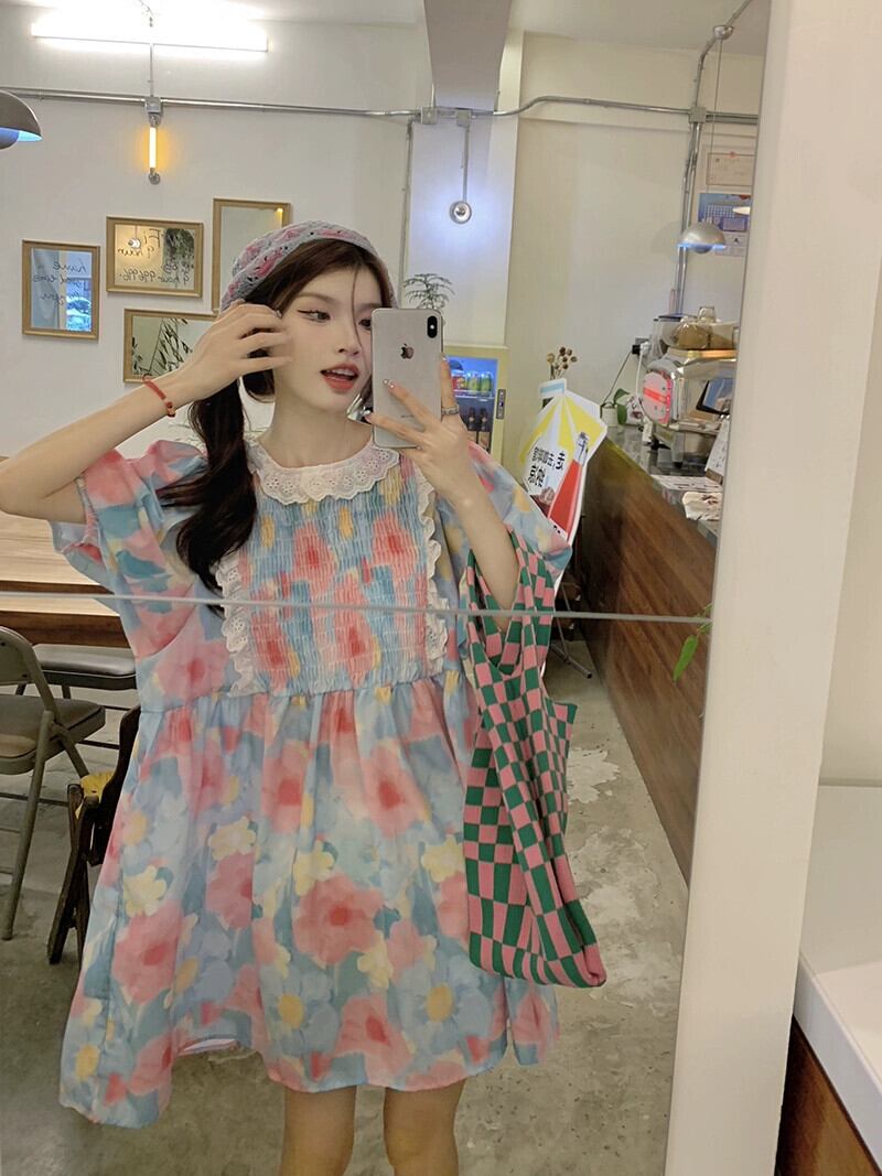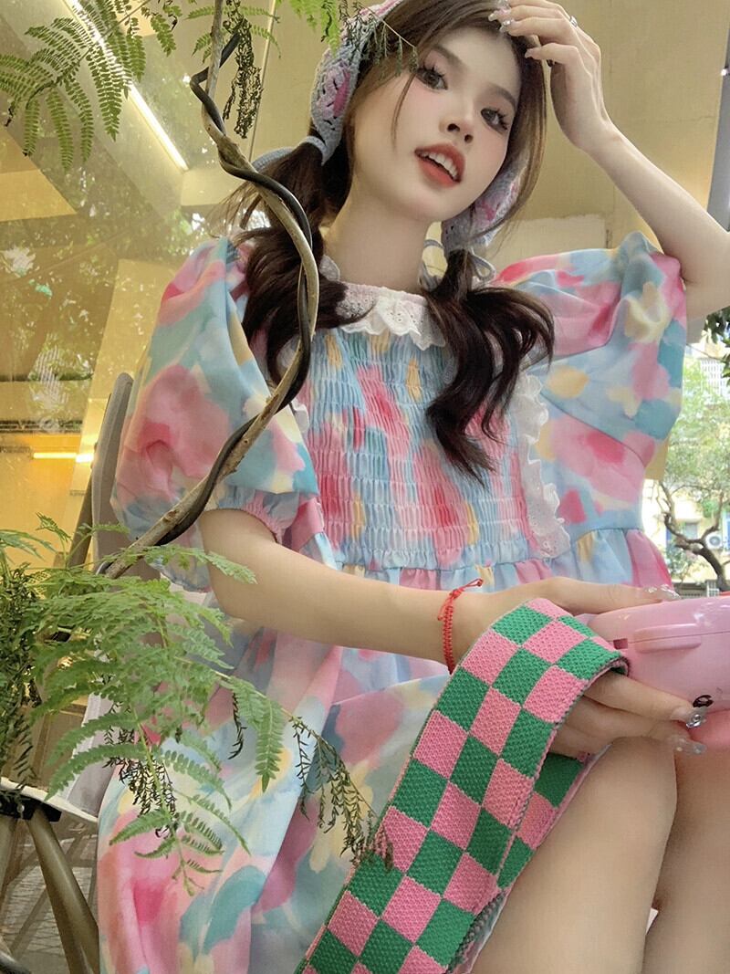 ドーパミンガールドレス女性の夏 2023 重工業レースプリーツルーズ半袖スカート ショート ハーフスリーブ サマー 夏物 missk73888229052