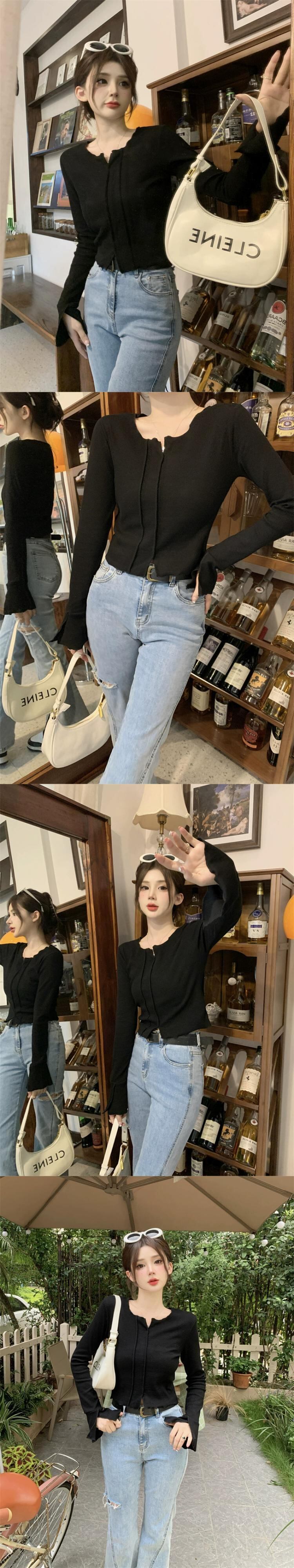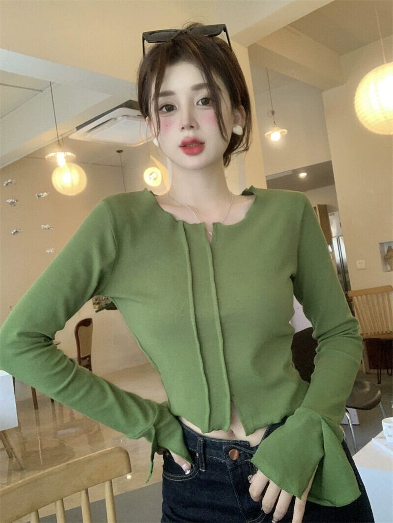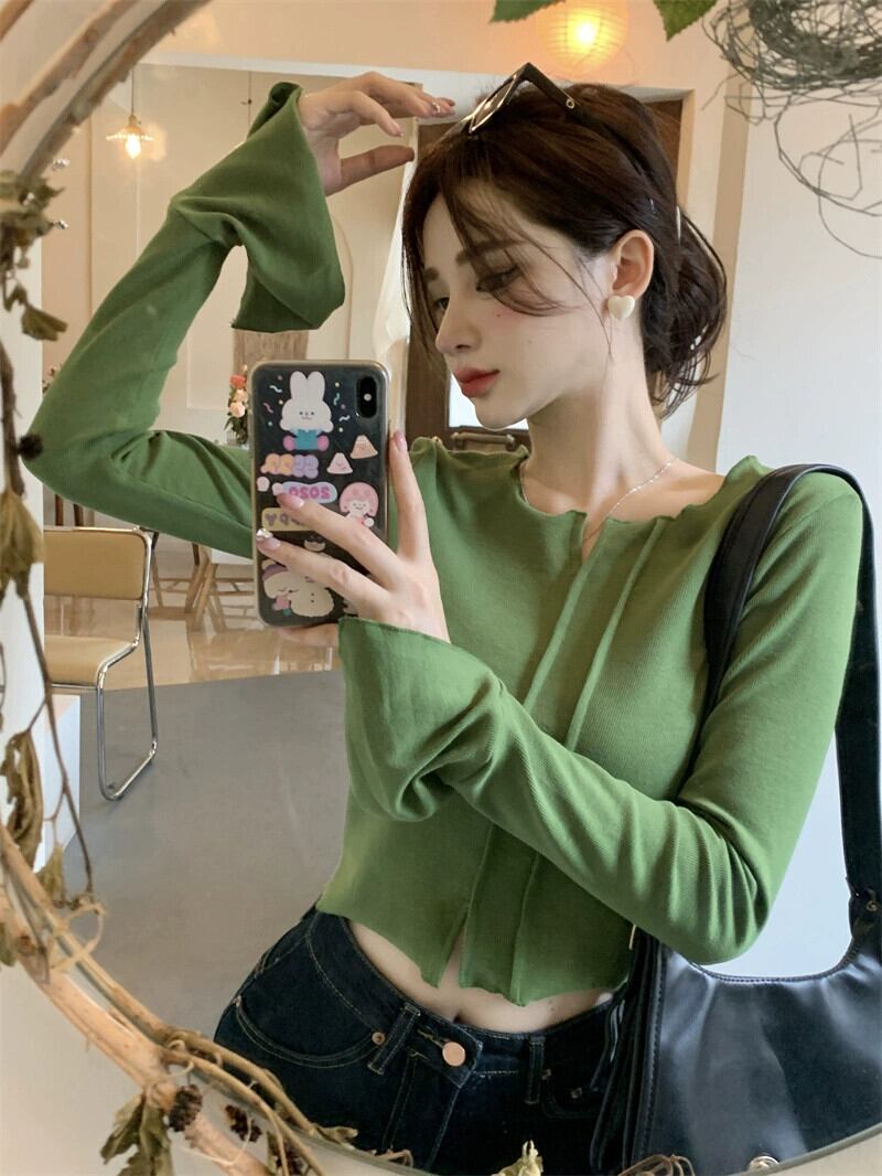 ニッチトランペットスリーブボトミングトップ女性初秋の新しいスリムフィット長袖Tシャツを着ています ロング オータム 秋物 missk83117815515