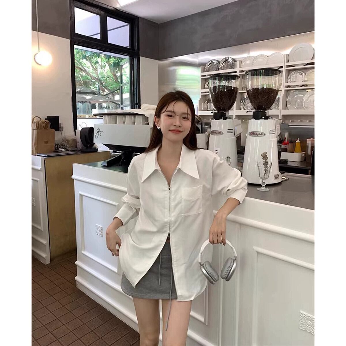 色:白のシャツ,ベスト,グレースカート