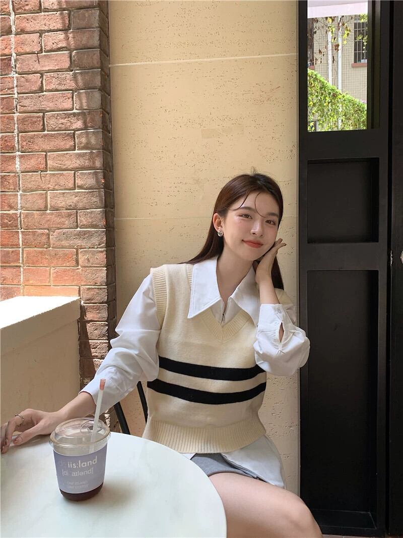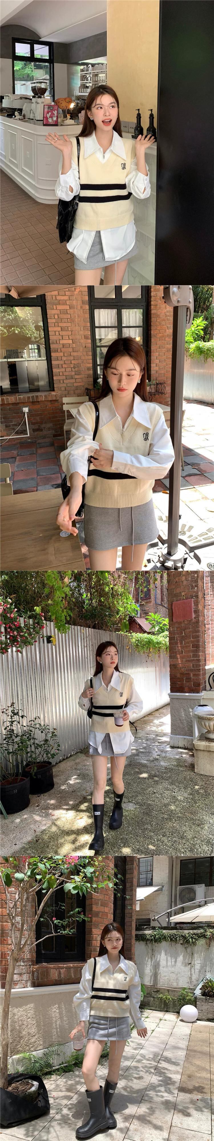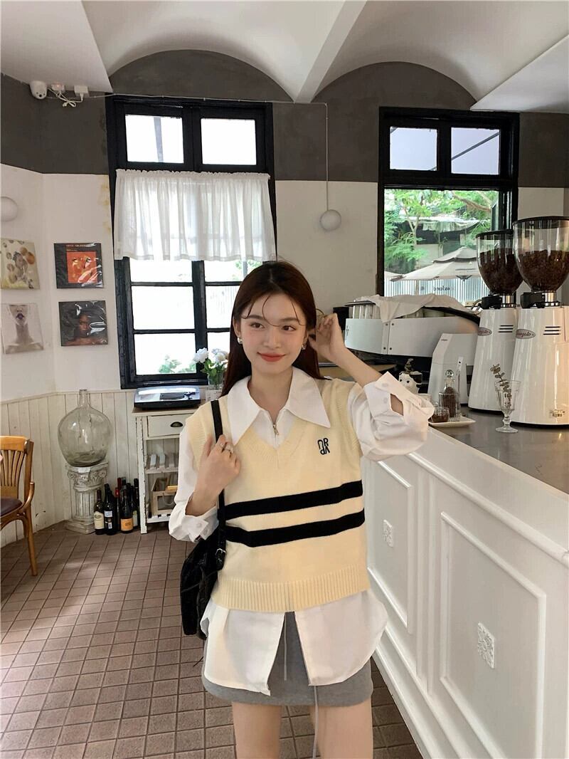 2023 初秋の新しいカレッジスタイルの年齢を軽減するシックなジッパーシャツの女性 + レトロなベスト + スカートスーツ オータム 秋物 missk67143972593