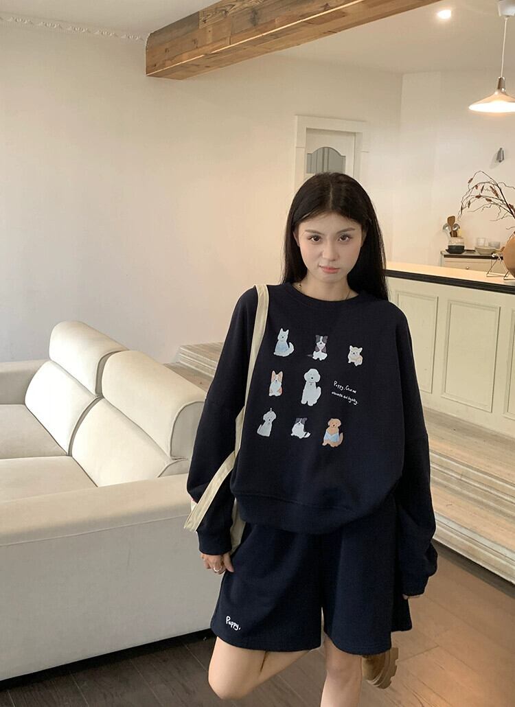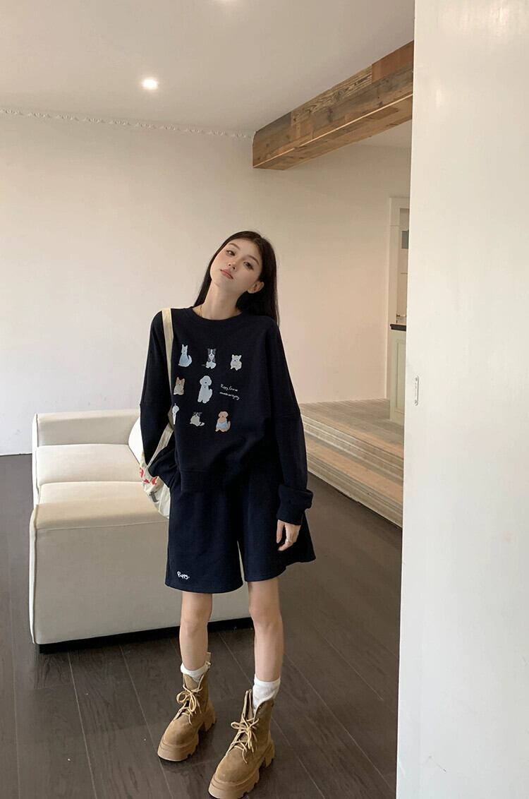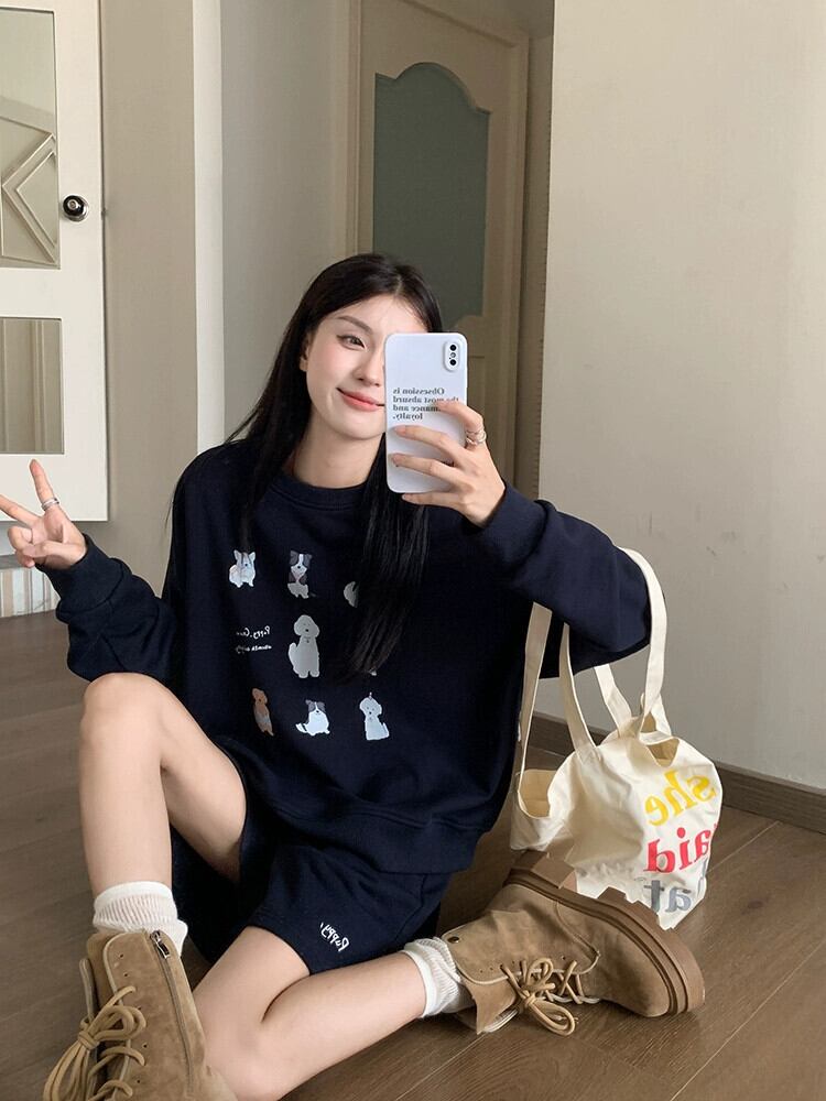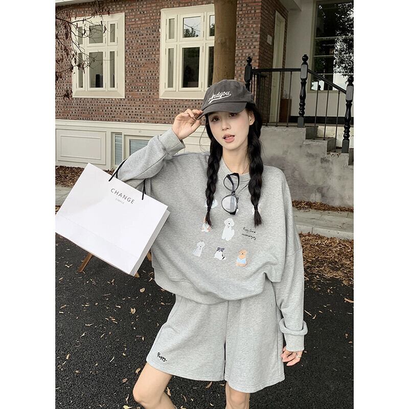 漫画プリントルーズ学生長袖スウェットシャツスポーツカジュアルショーツ女性秋 2023 新しいファッションツーピースセット ロング オータム 秋物 ブルマー missk71429784554