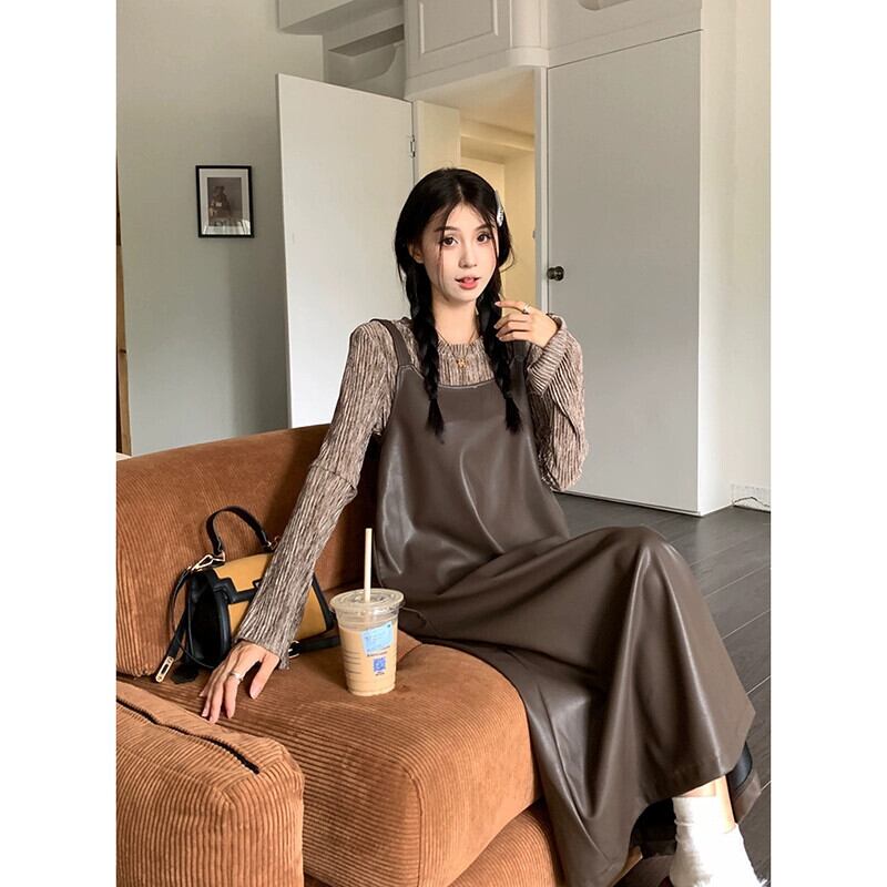 PU レザーサスペンダードレス女性秋 2023 新しいフレンチニッチハイエンドルーズミッドレングスのアウタースカート オータム 秋物 missk14143887910